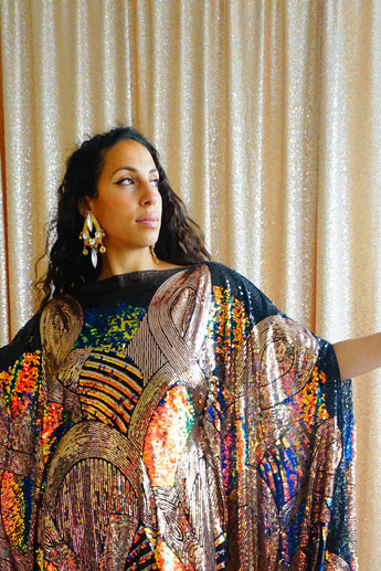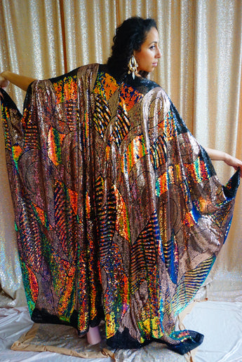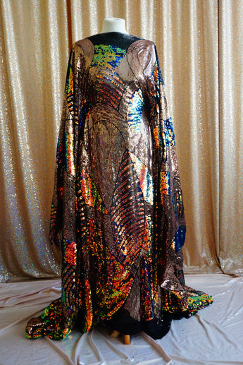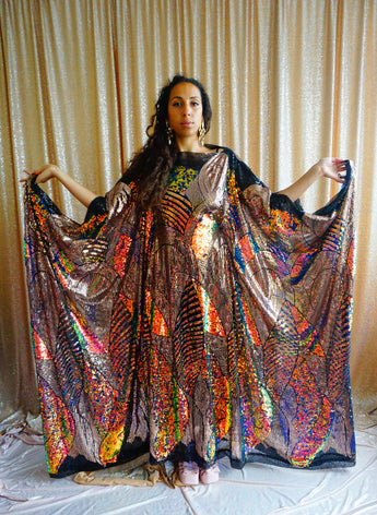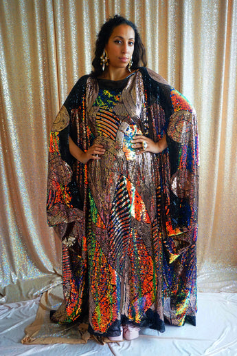 •F• Label Mothership 2.0 Slash Neck Heavily sequinned Exquisite Kaftan Gown