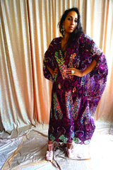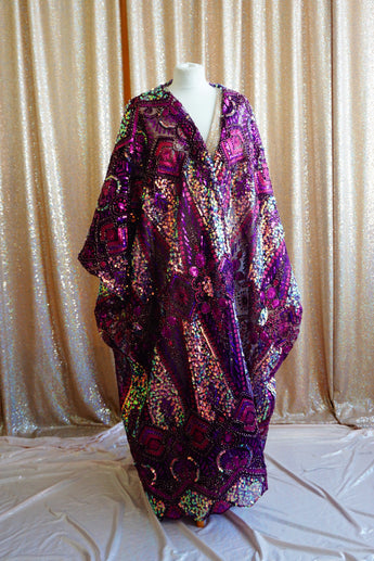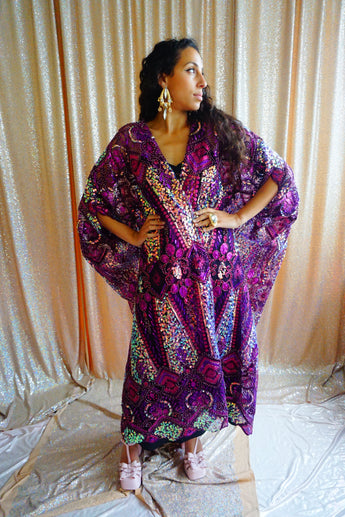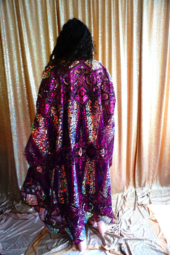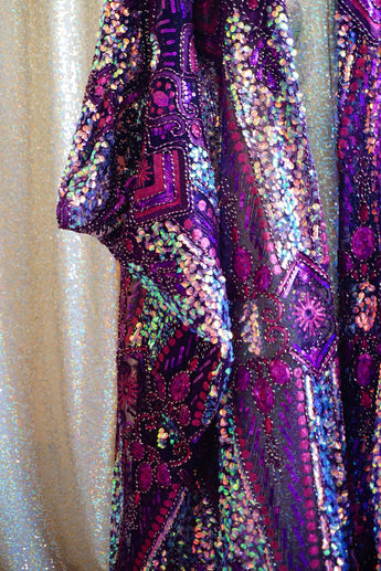 •F• Label Purple iridescent Heavily sequinned and Embroidered Kimono Robe
