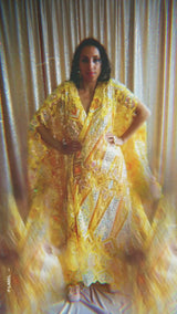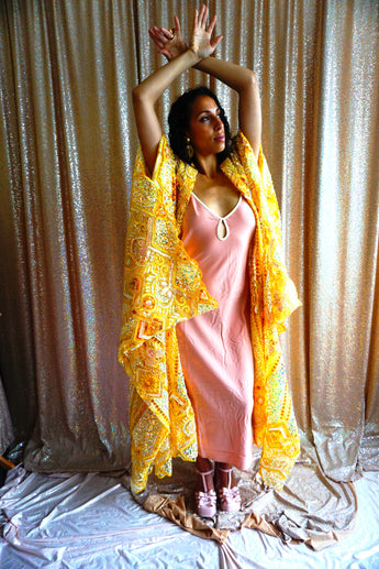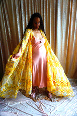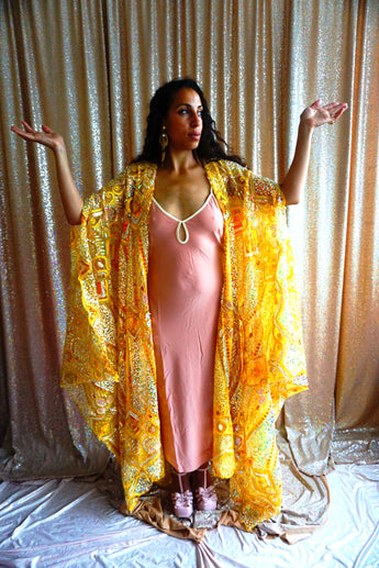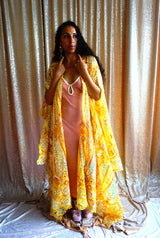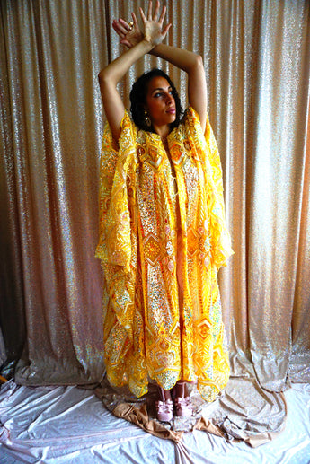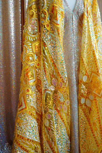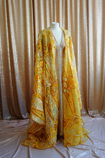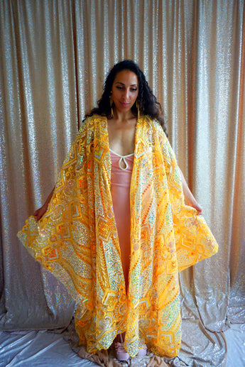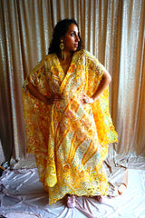•F• Label Sunshine Iridescent Yellow Heavily sequinned and Embroidered Kimono Robe
