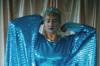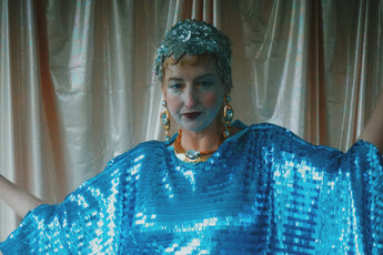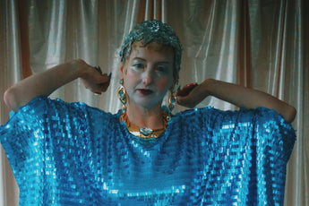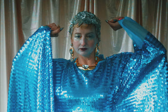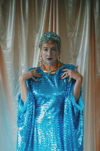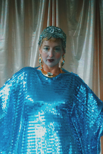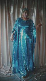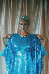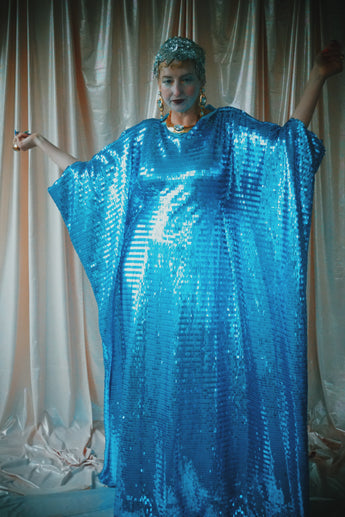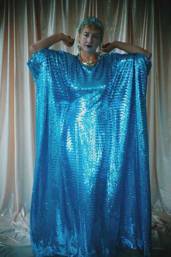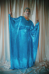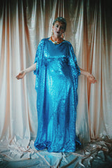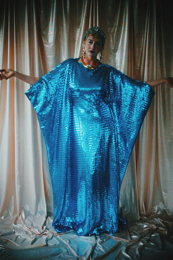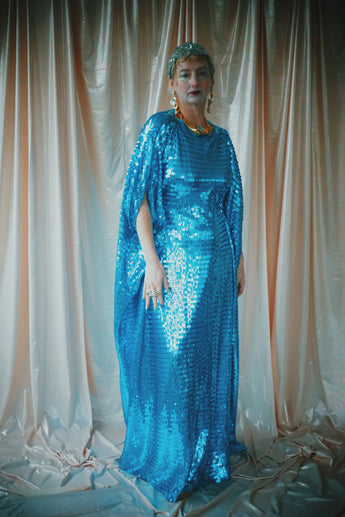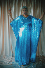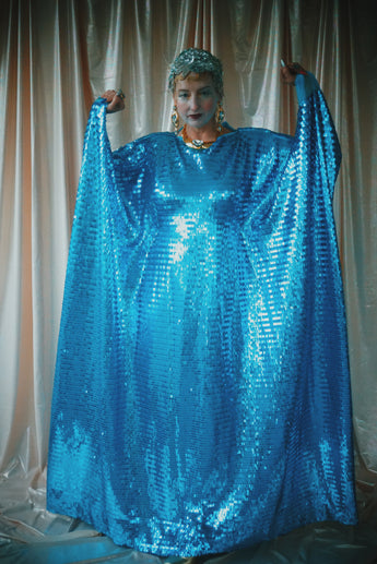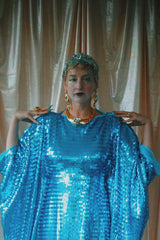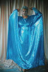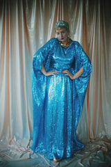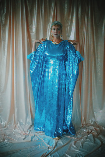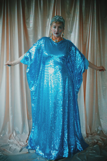 No.11 Femme Fatale - Slash Neck Icey Blue Slinky sequin kaftan Gown