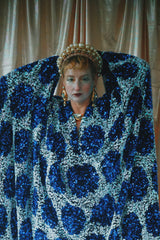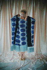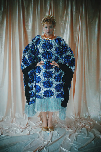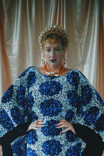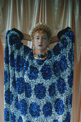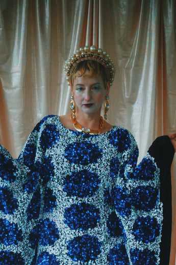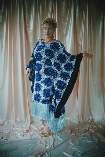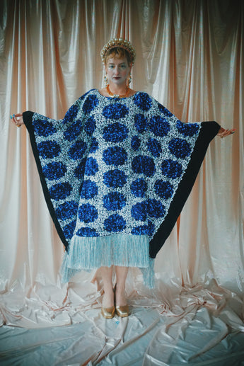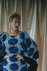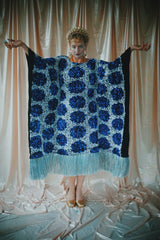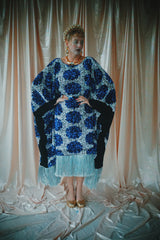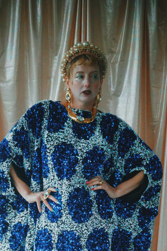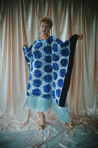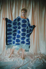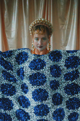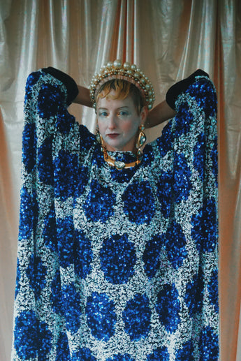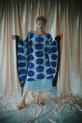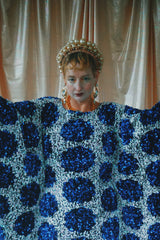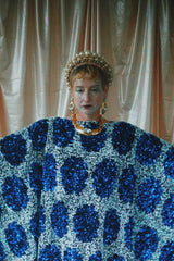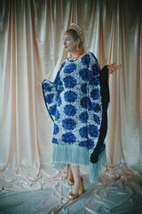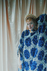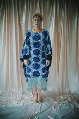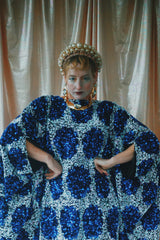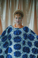 No.13 Dotty Daydream Blue and white spotted Midi round neck tinsel kaftan Gown