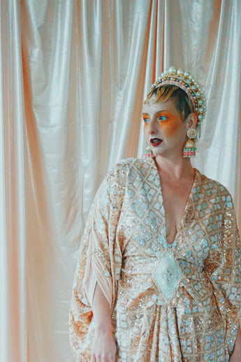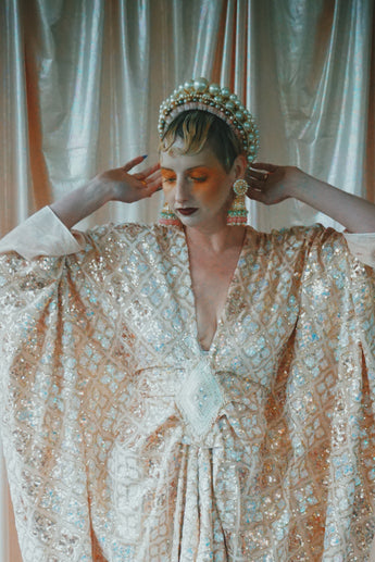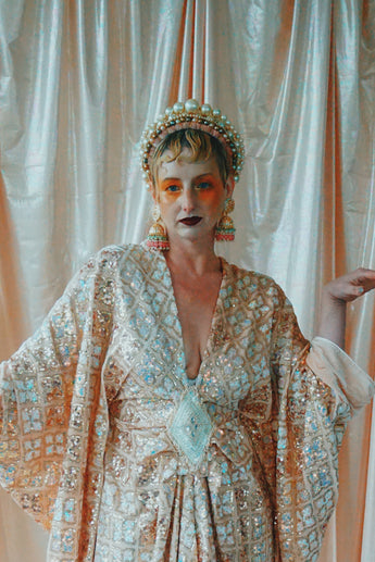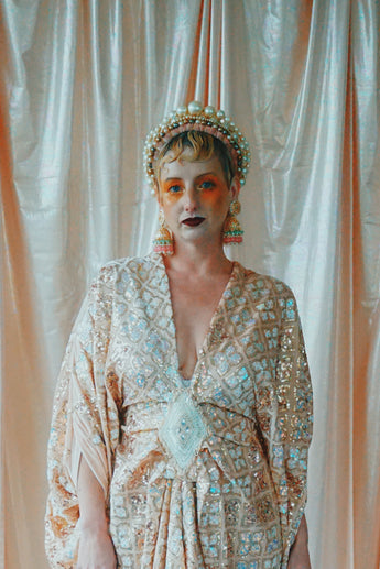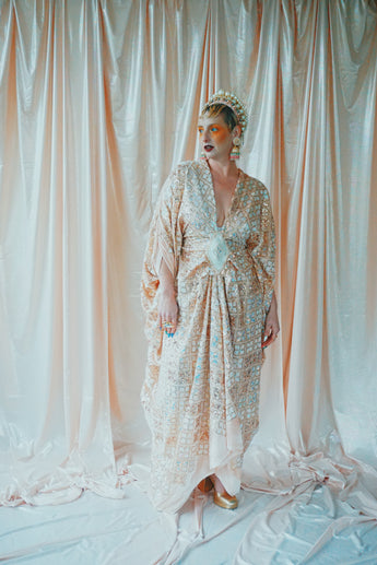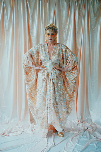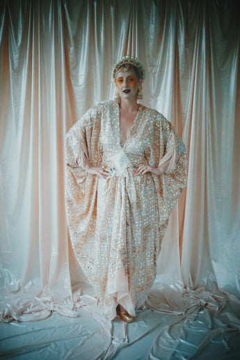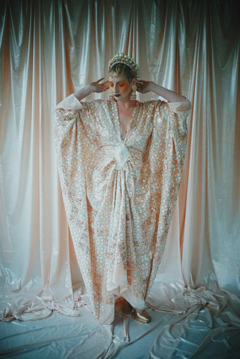 No.18 Another Diamond Day…Velvet Cream and Iridescent Sequinned Kaftan gown
