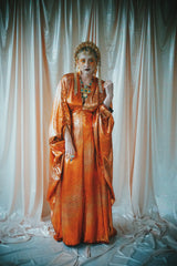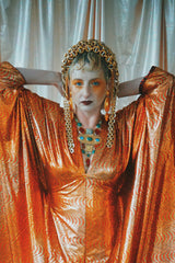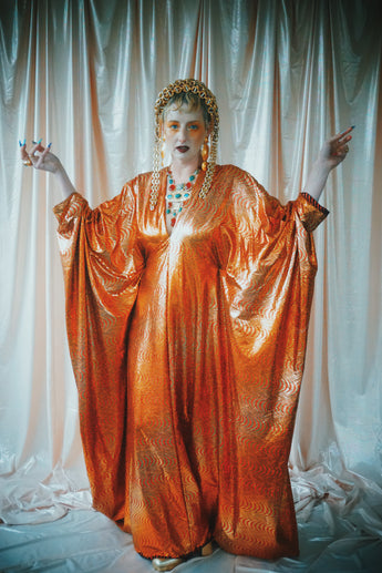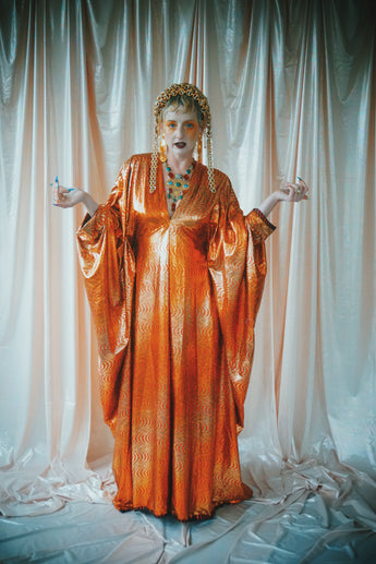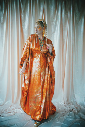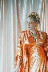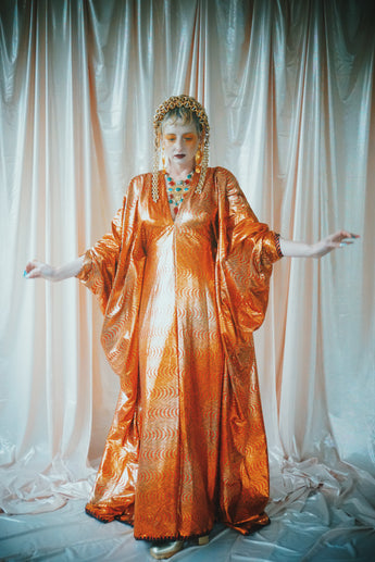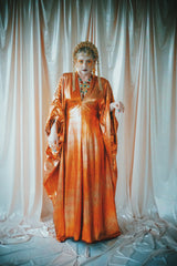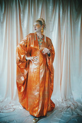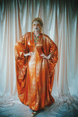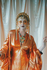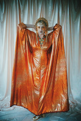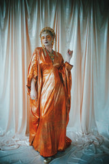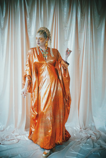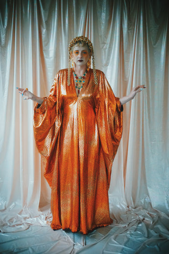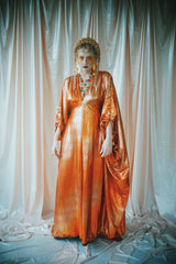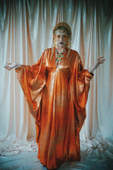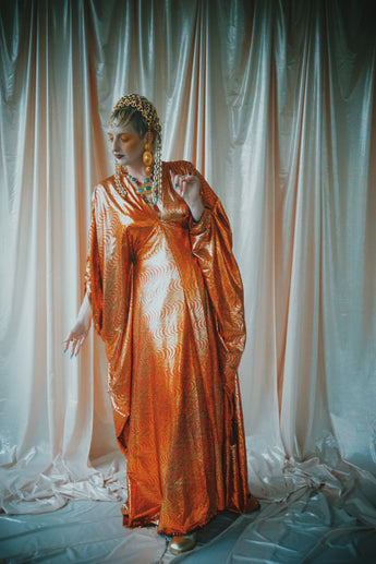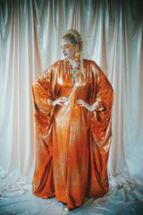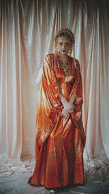 No.21 Flash Gordon approaching Glittered red and gold Foil Kaftan gown