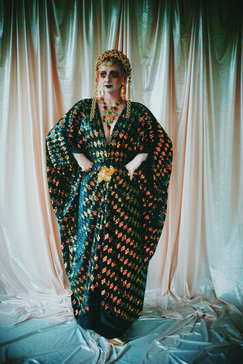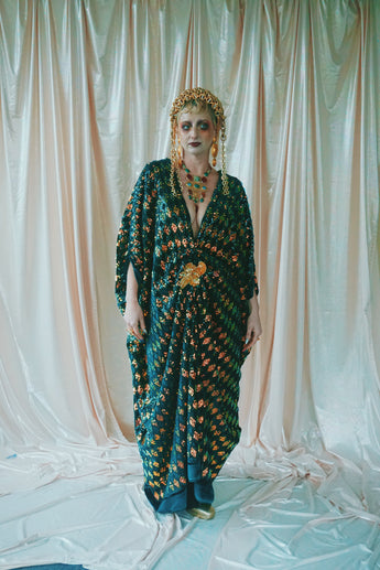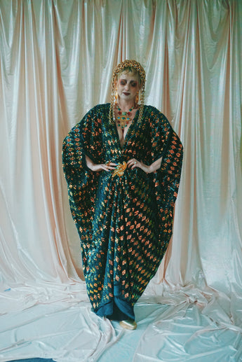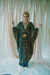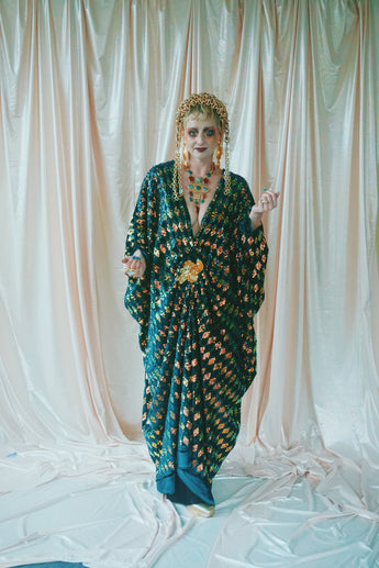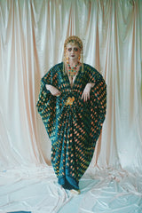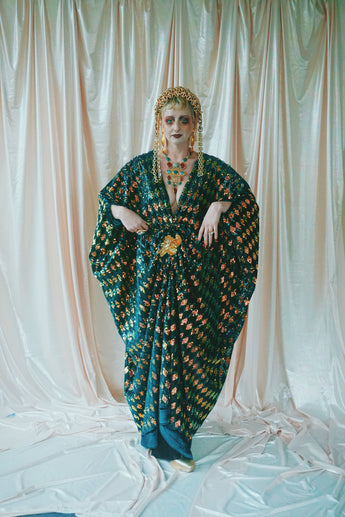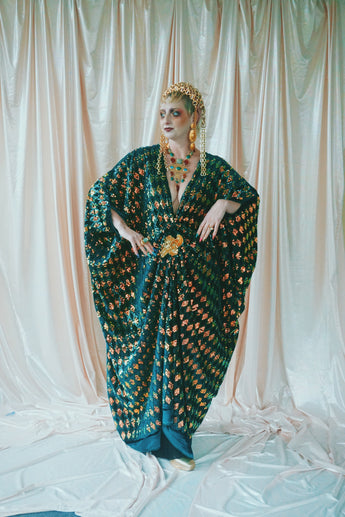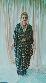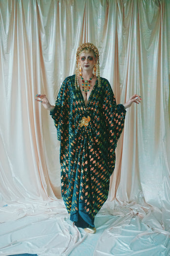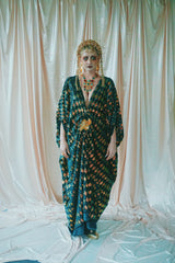 No.29 iridescent dynasty - Batwing Plunge Kaftan Ruched Dress