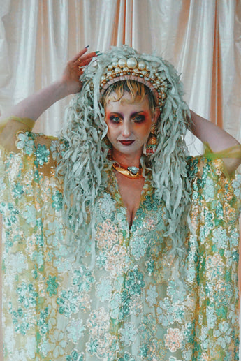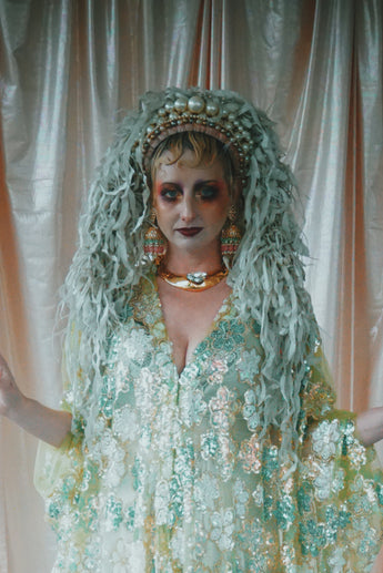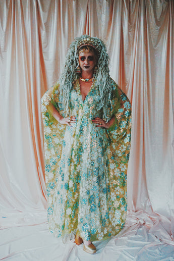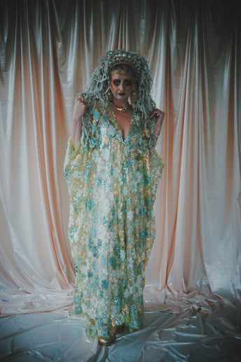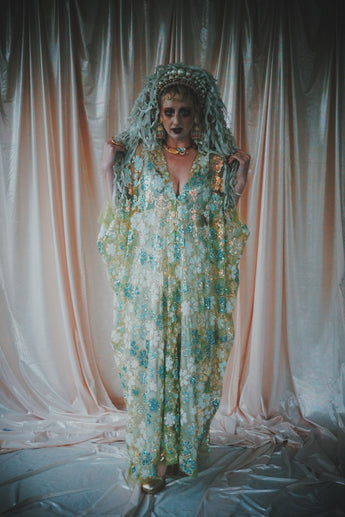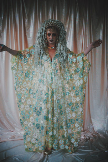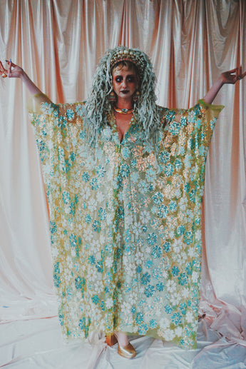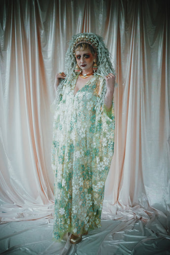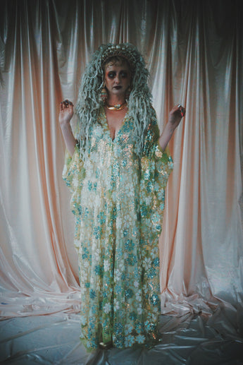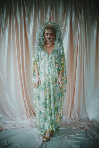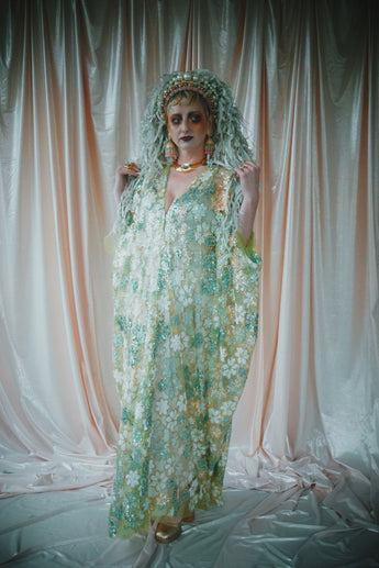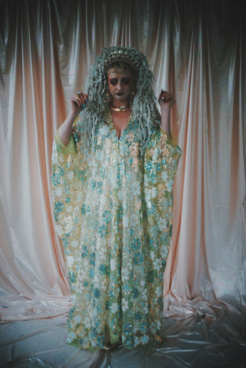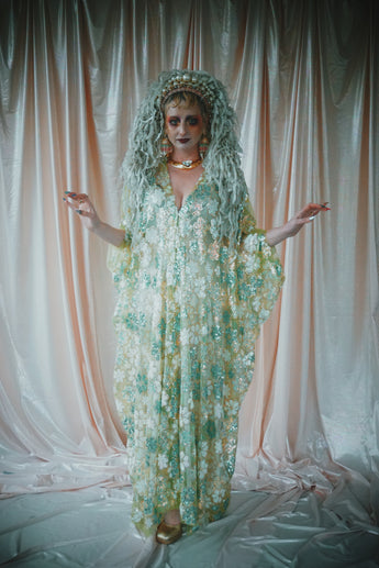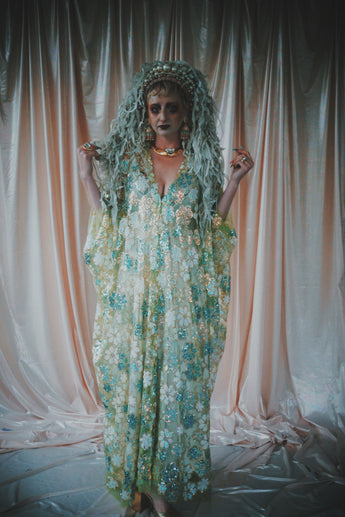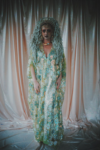 No.30 Twinkle Twinkle green sequin V-neck kaftan Gown