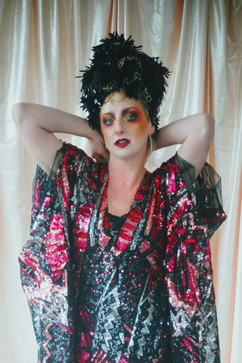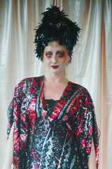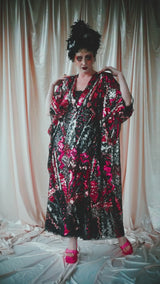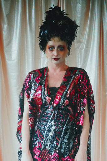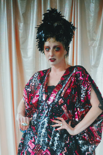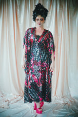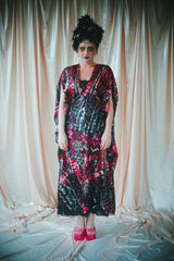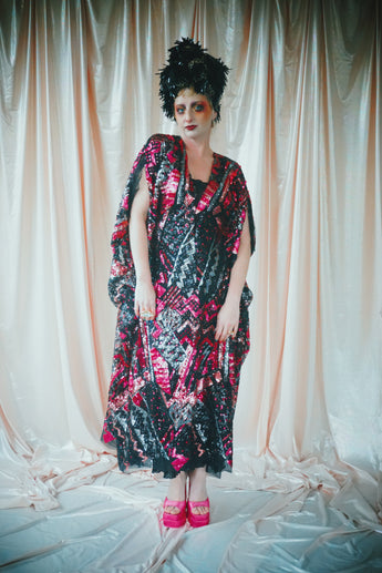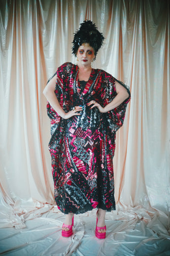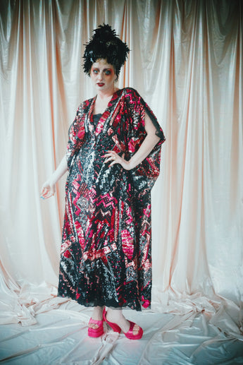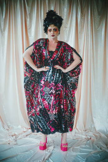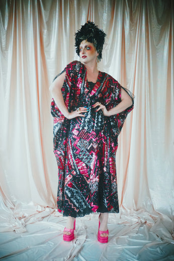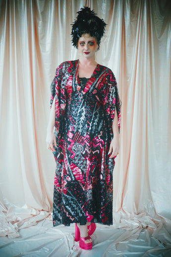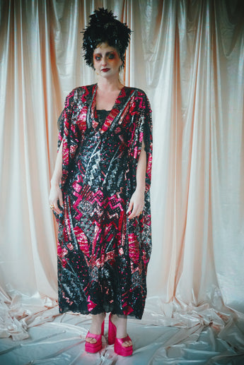 No.47 She Bop - V-Neck Style - pink and black sequin kaftan gown