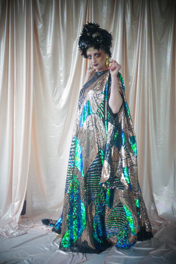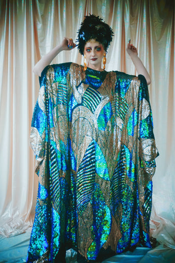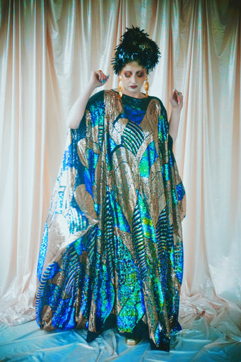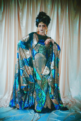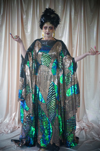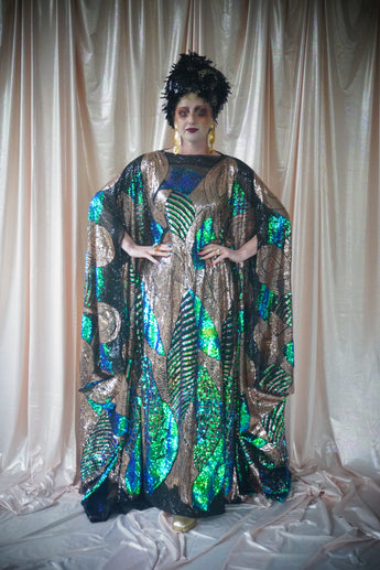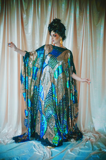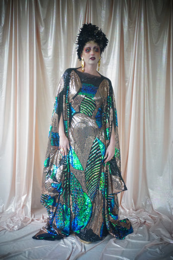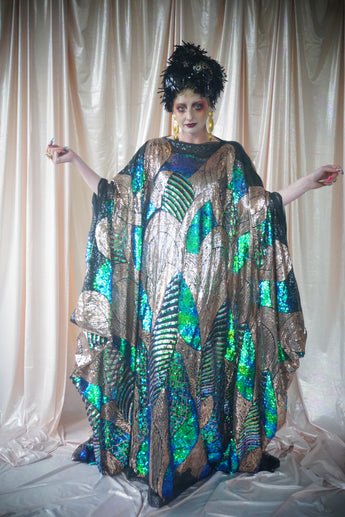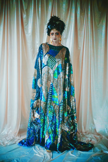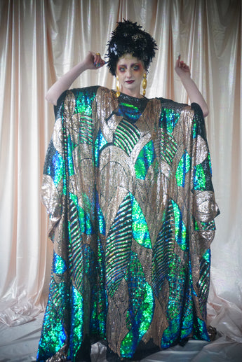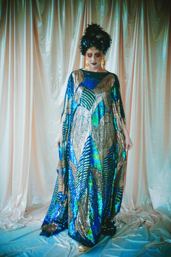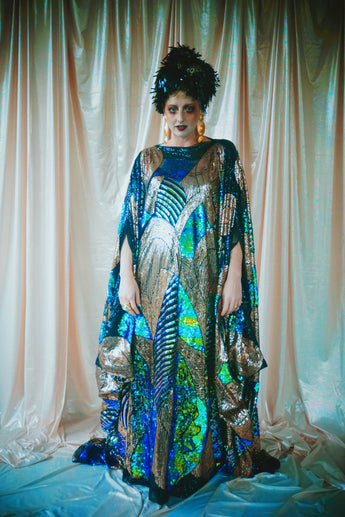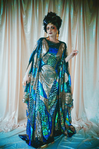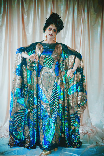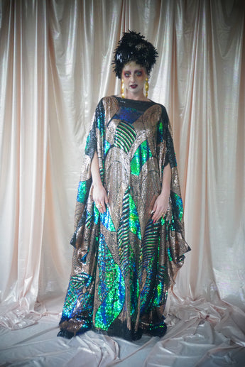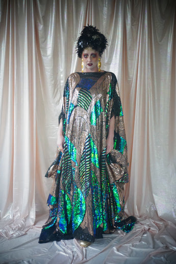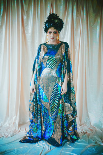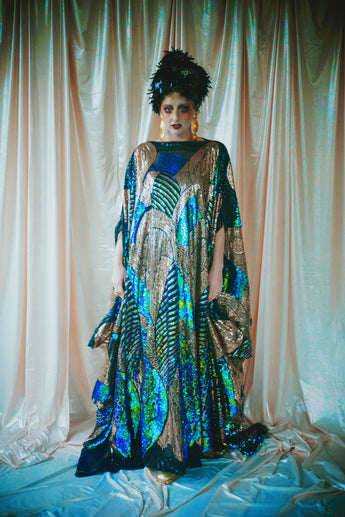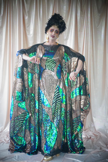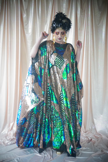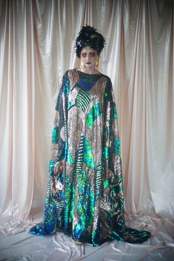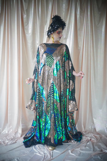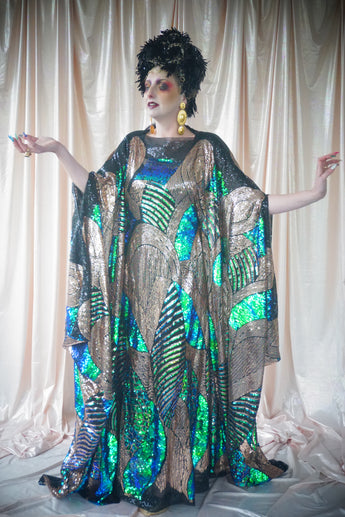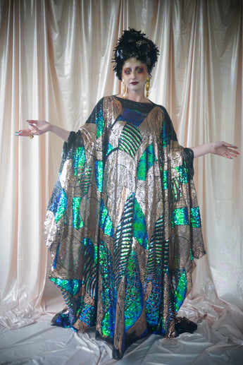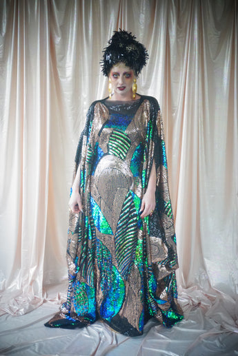 No.50 The mothership - iridescent holographic patterned sequin kaftan gown