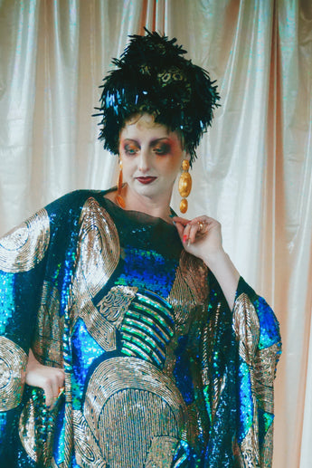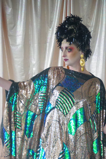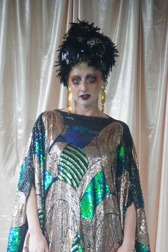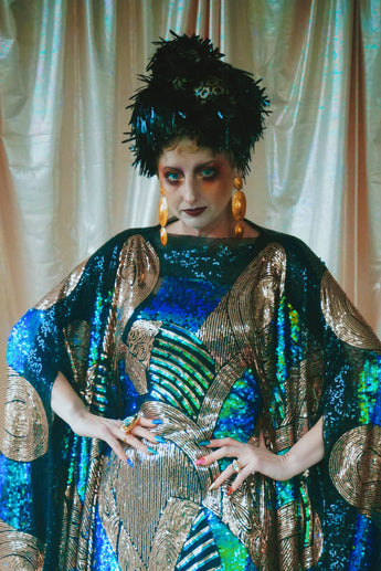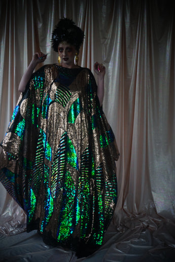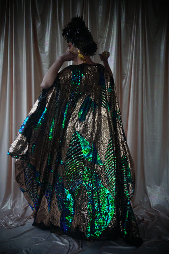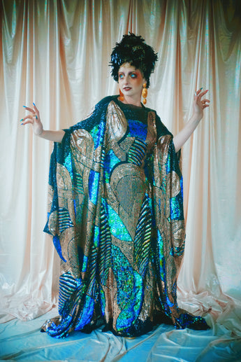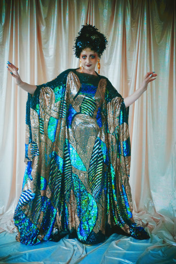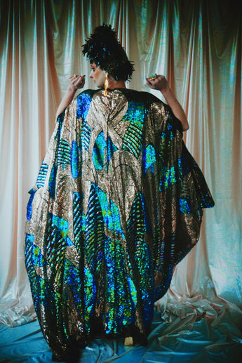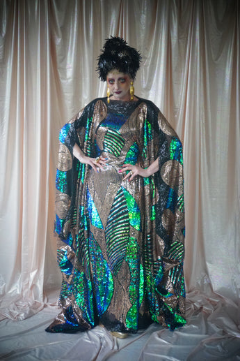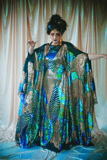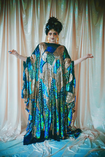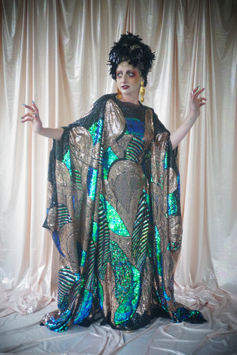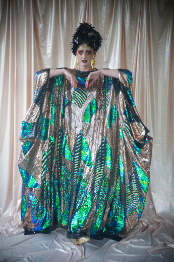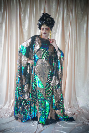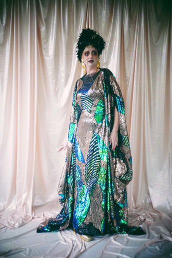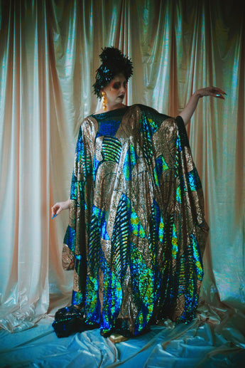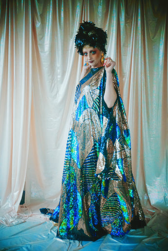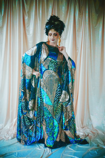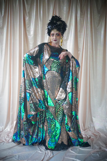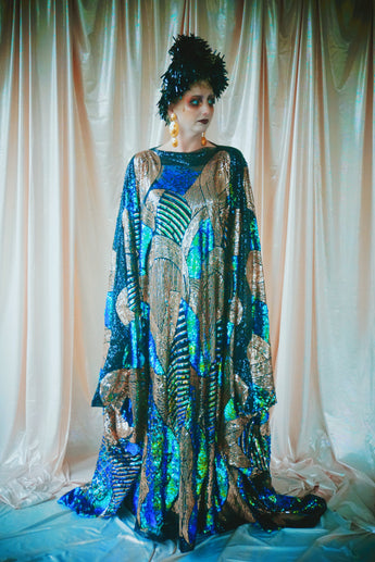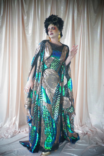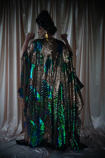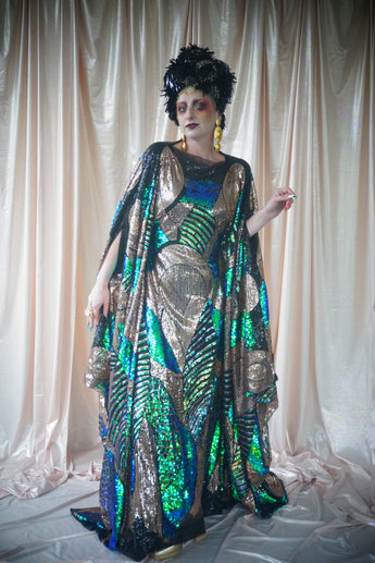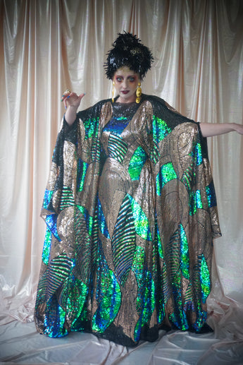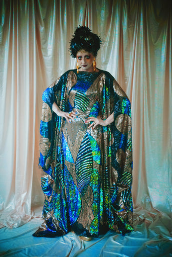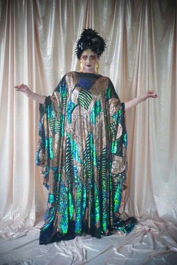 No.50 The mothership - iridescent holographic patterned sequin kaftan gown