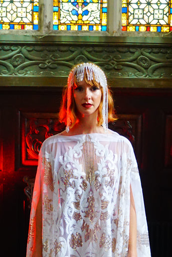 White & Gold Art Deco Kaftan Gown