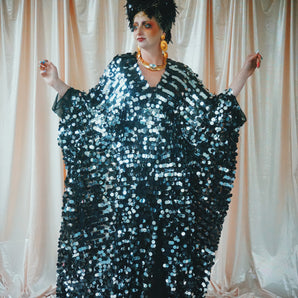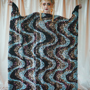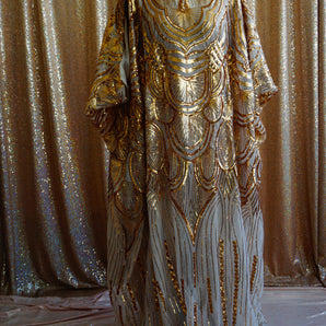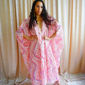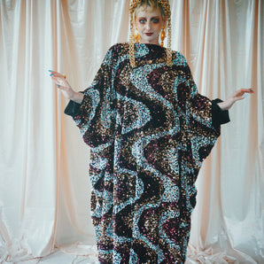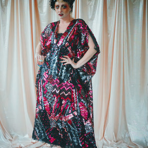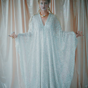 Quick view NO.9 Teardrops - White velvet teardrop pink and gold sequin kaftan Gown £195.00 /1 in stockChoose options Sold out