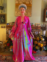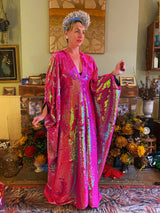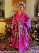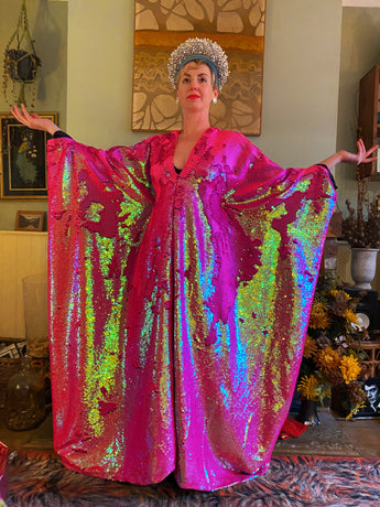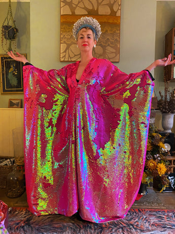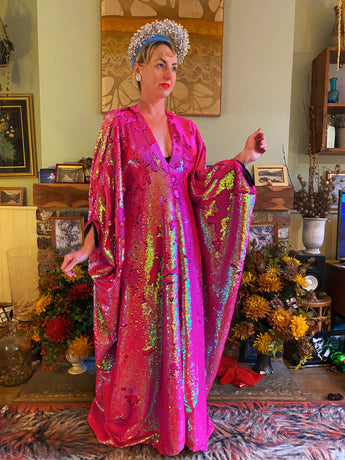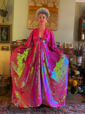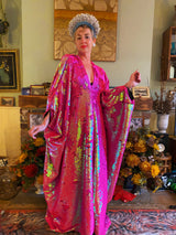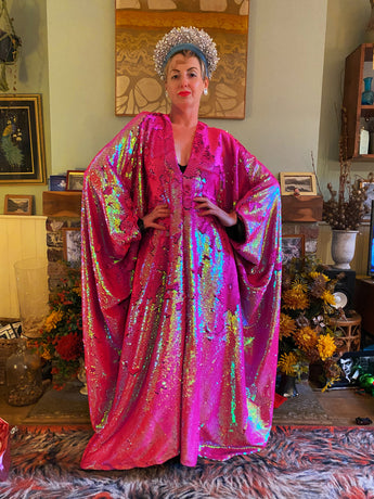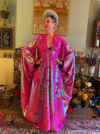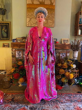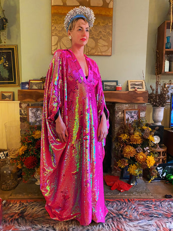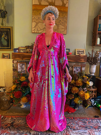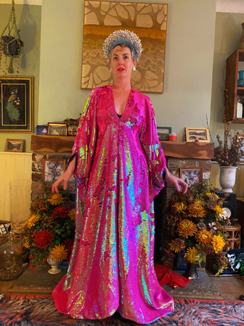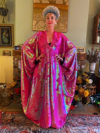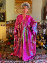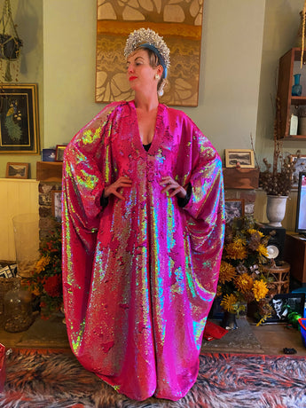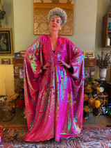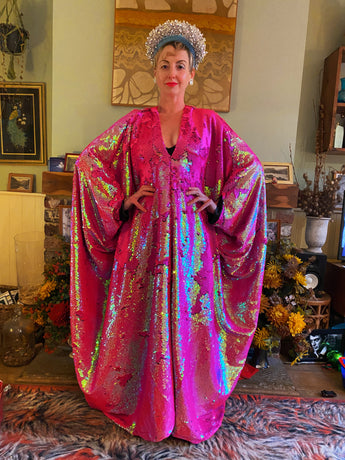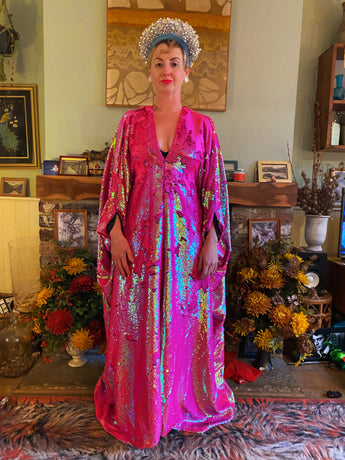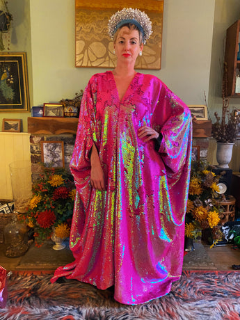 Heavily sequinned HOT pink iridescent shiny/matte Free size Kaftan Gown UK 6 - 26