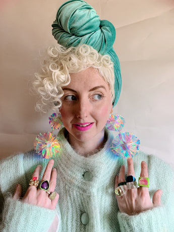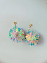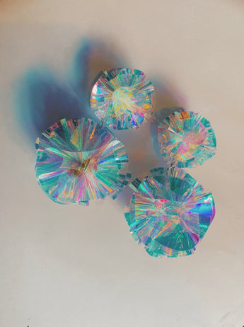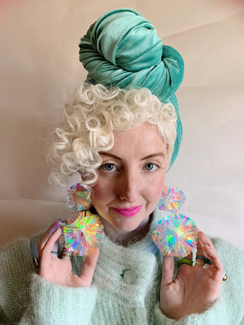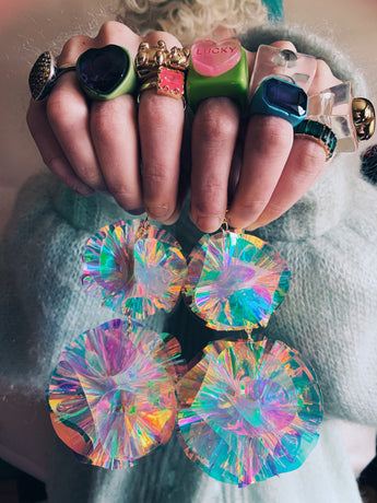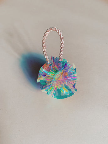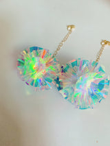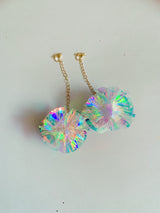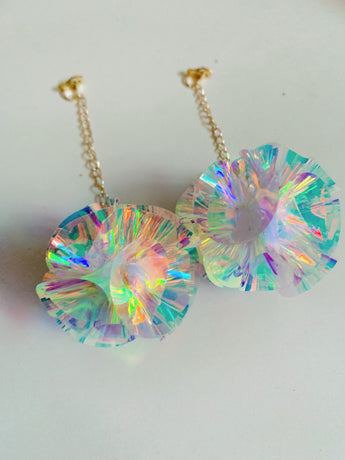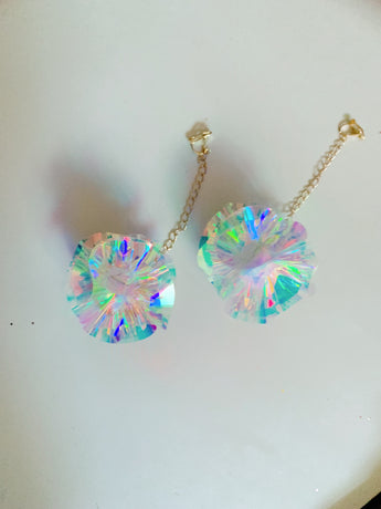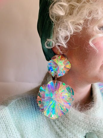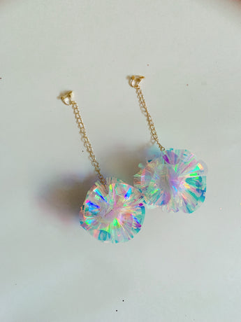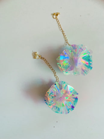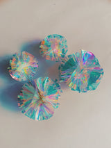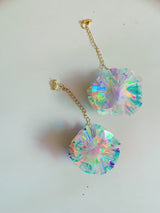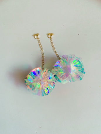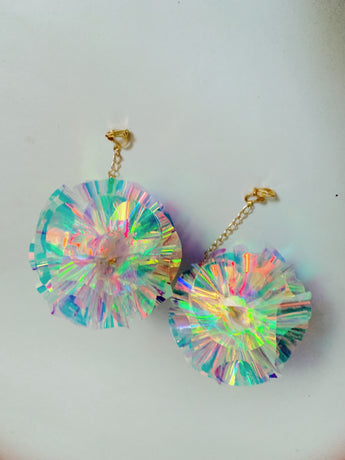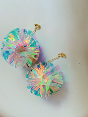 Handmade one of a kind iridescent orb lightweight earrings which reflect an array of colours when the light catches them. Finished with gold chains and either gold plated hoops or clip ons. Available as a set of 2 / a pair of earrings or decorative baubles. Lightweight and comfortable/easy to wear. Please allow up to 2 weeks for production and delivery. For delivery by specific dates, please contact us direct - fumbalinas@gmail.com before ordering.