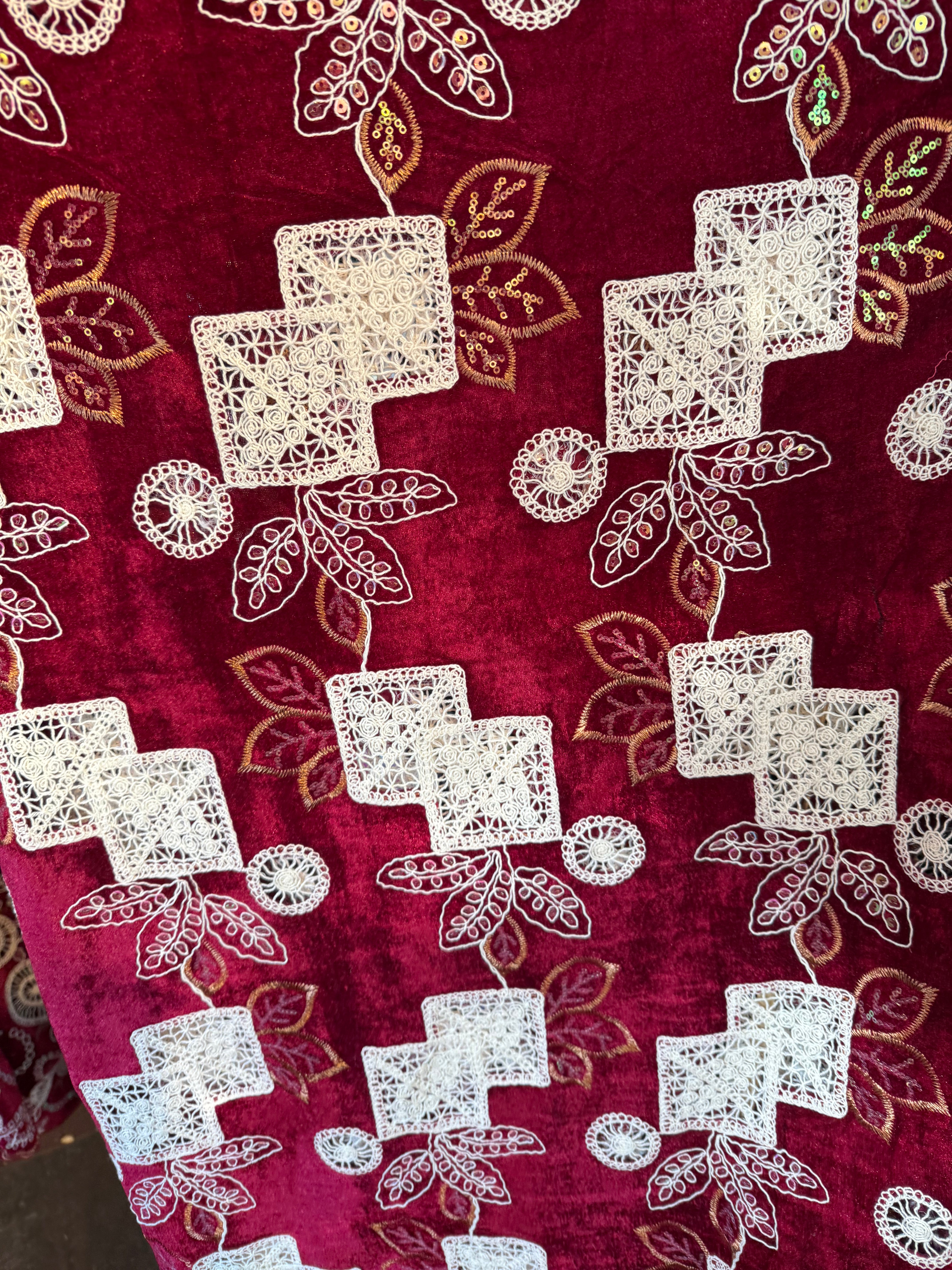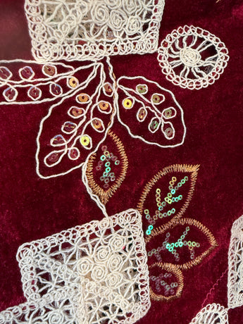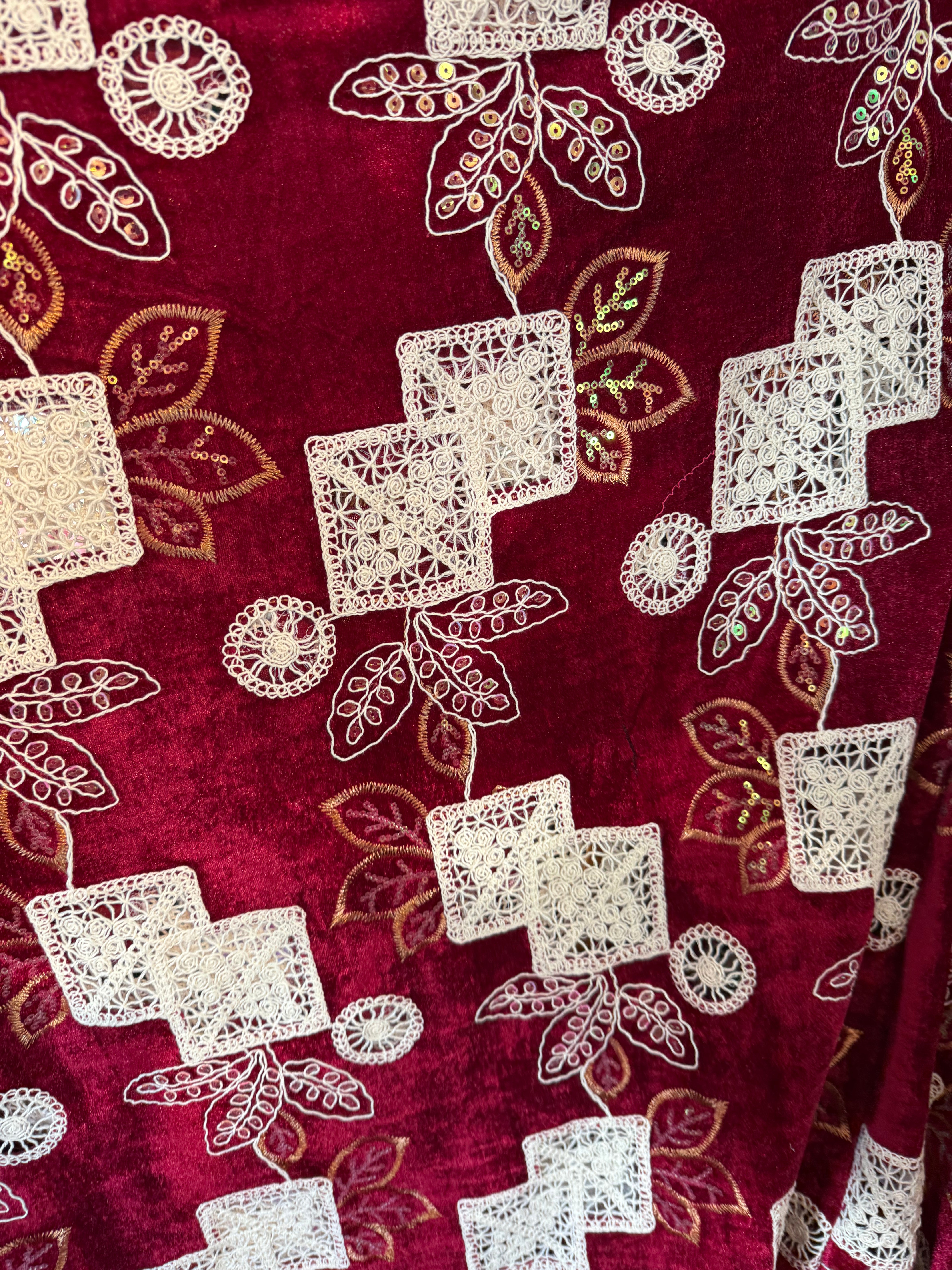 Beautiful velvet lace with sequins and pattered crochet lace - Red Squares