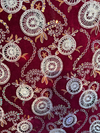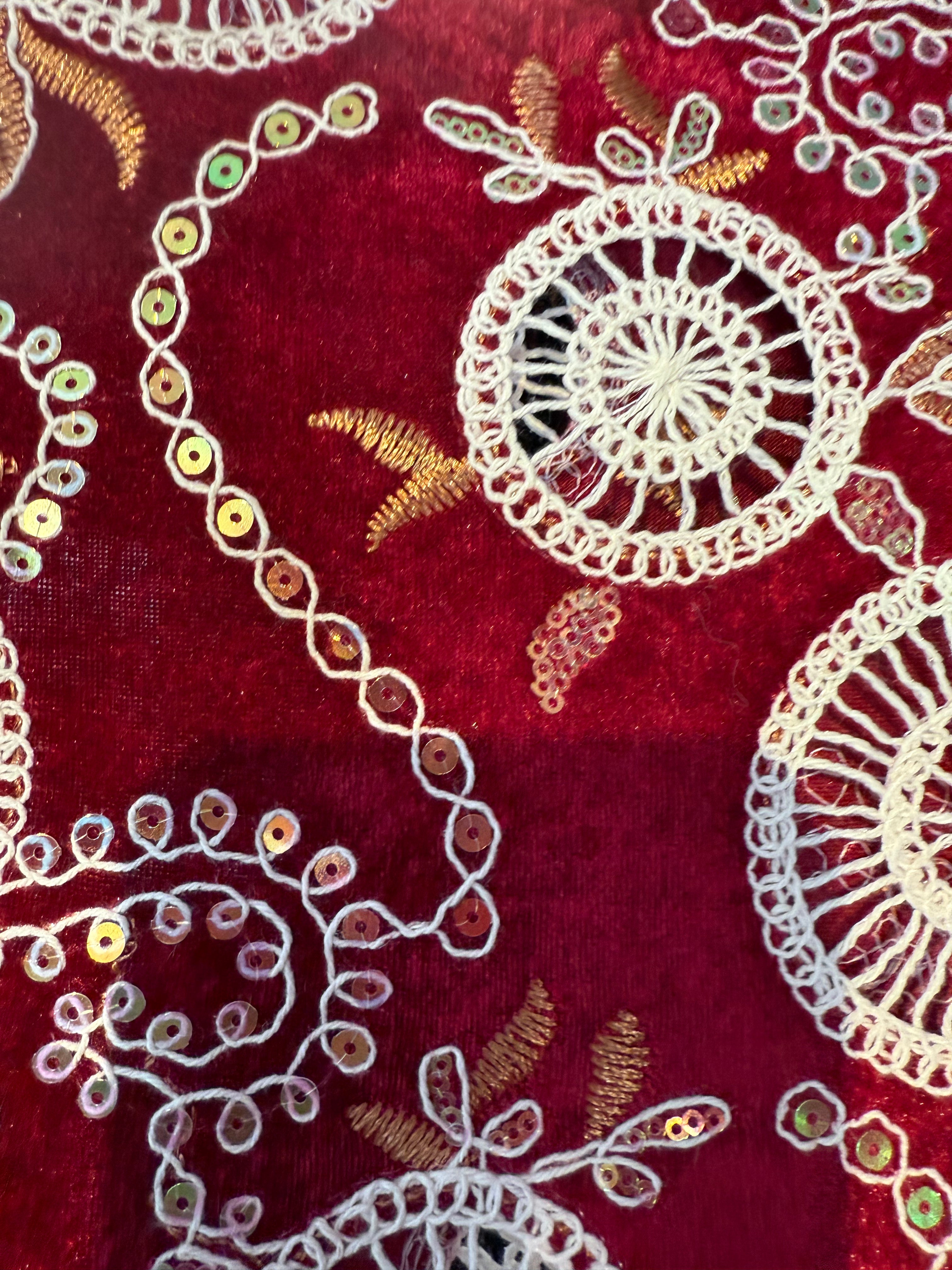 Beautiful velvet lace with sequins and pattered crochet lace - Red white Circles