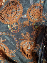 Beautiful velvet lace with sequins and pattered crochet lace - Grey brown Circles
