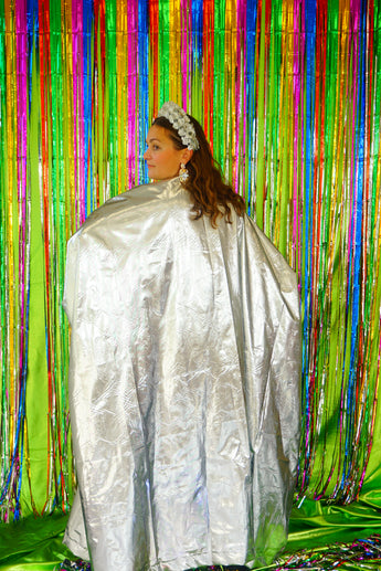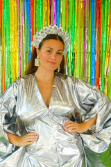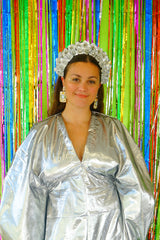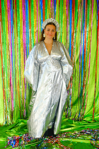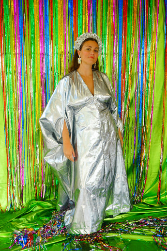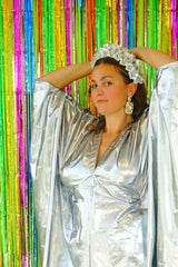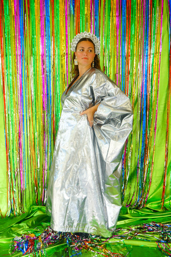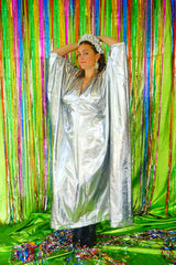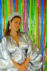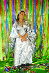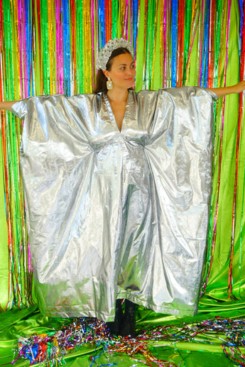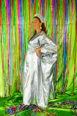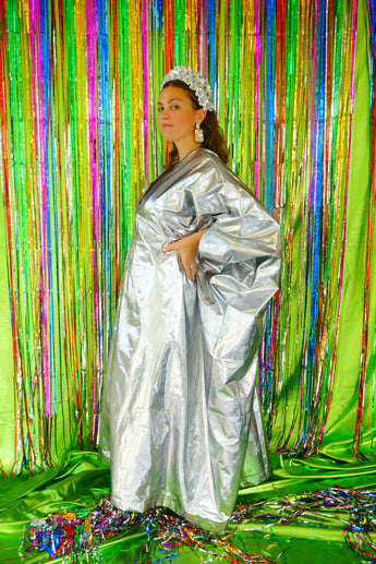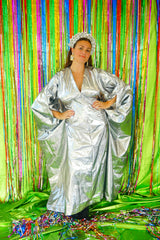 Metallic Foil Flash Gordon Chrome Kaftan - Silver