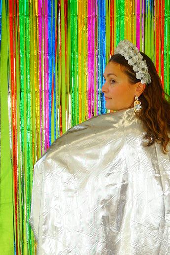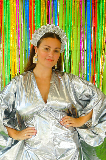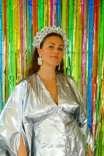 Bring the drama to the party in one of our metallic flash Gordon inspired kaftans. Made from a thin and lightweight chrome fabric they are incredibly metallic and futuristic!