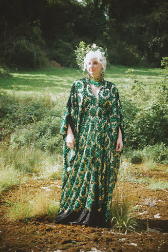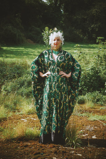Our kaftan dresses are uniquely fitted with hidden velvet ribbons on the inside meaning YOU decide how you'd like to wear them. Choose from -