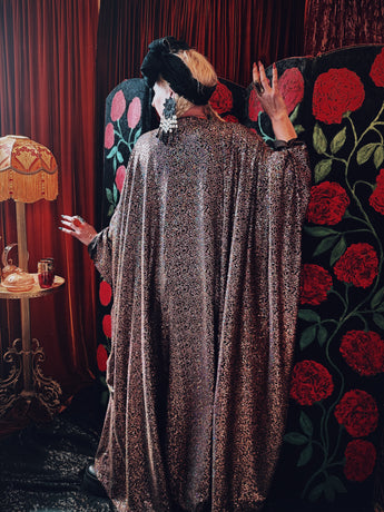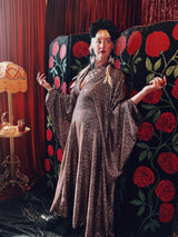 Holographic Bronze Shimmer Sequin V-Neck Kaftan Gown, Freesize