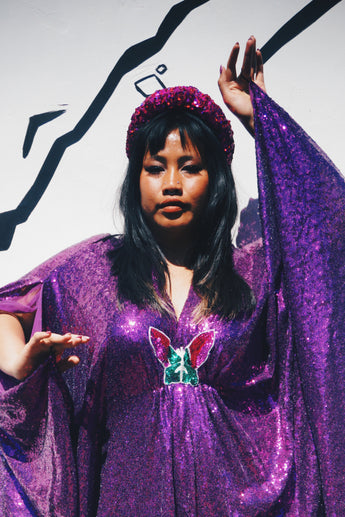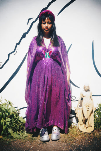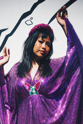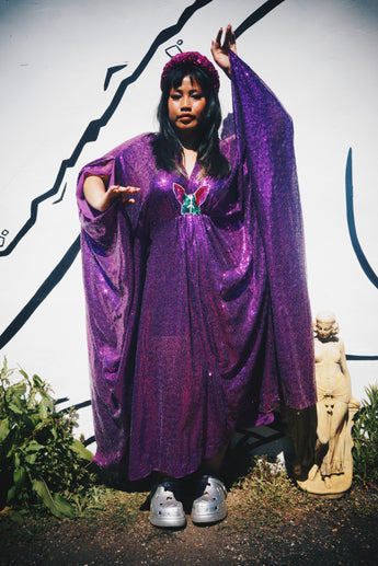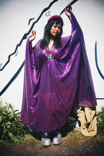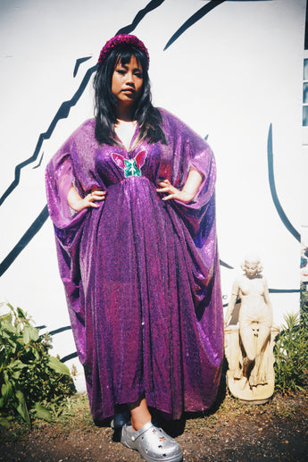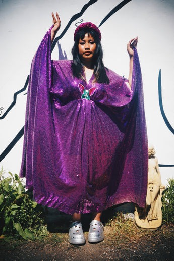 Butterfly Purple Sequin Kaftan with wings, Freesize
