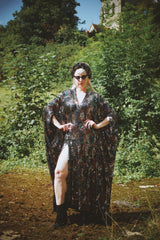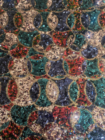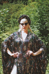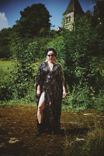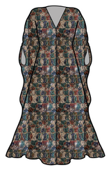 Autumnal Art Deco Circles Sequin V Neck Kaftan Gown, Freesize