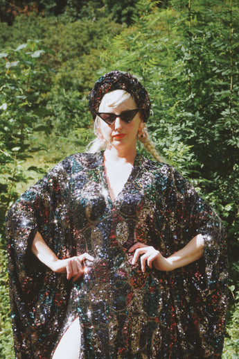 Our kaftan dresses are uniquely fitted with hidden velvet ribbons on the inside meaning YOU decide how you'd like to wear them. Choose from -