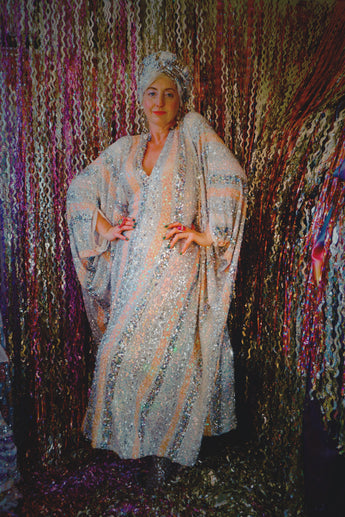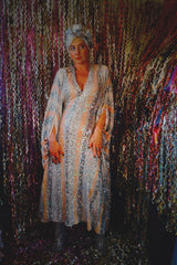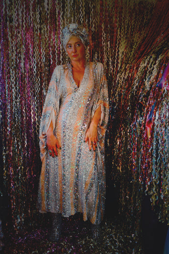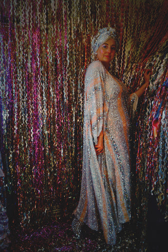 Our kaftan dresses are uniquely fitted with hidden velvet ribbons on the inside meaning YOU decide how you'd like to wear them. Choose from -