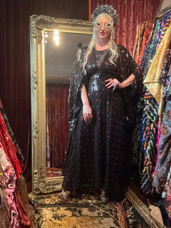 Our kaftan dresses are uniquely fitted with hidden velvet ribbons inside, meaning YOU decide how you'd like to wear them. Choose from -