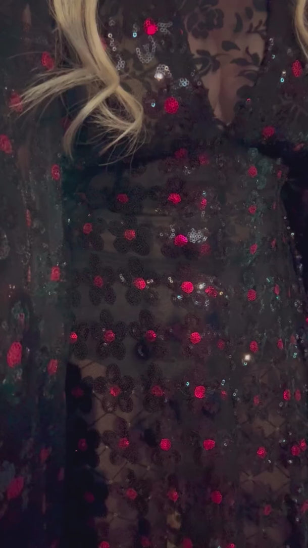 XMAS 25 OFF THE RAILS - sheer black and pink daisy v-neck