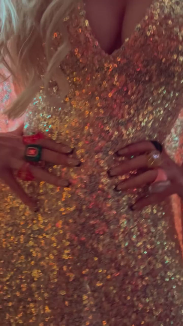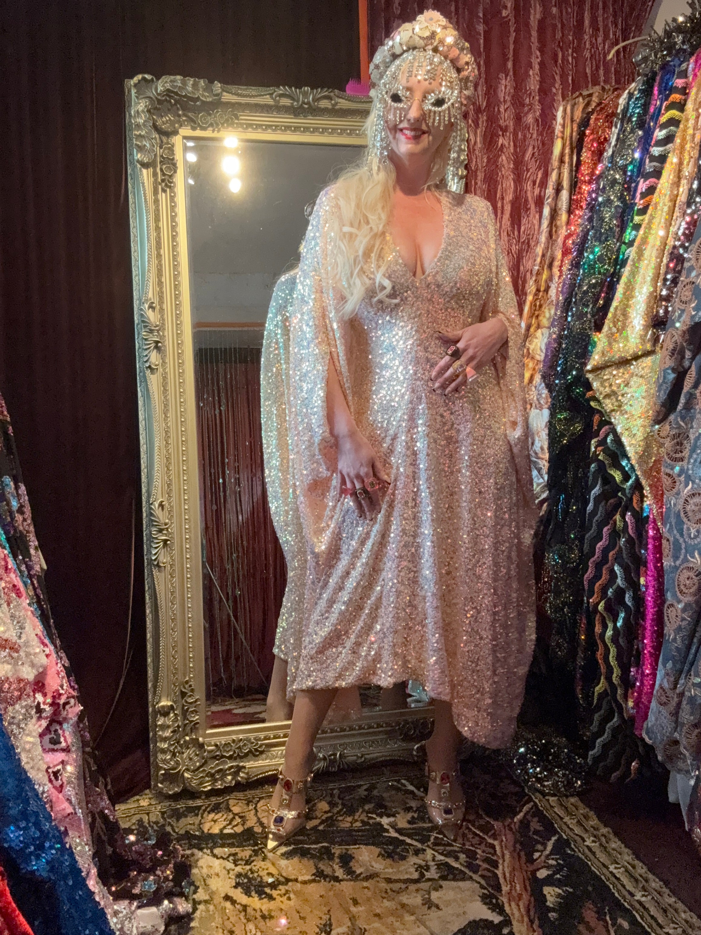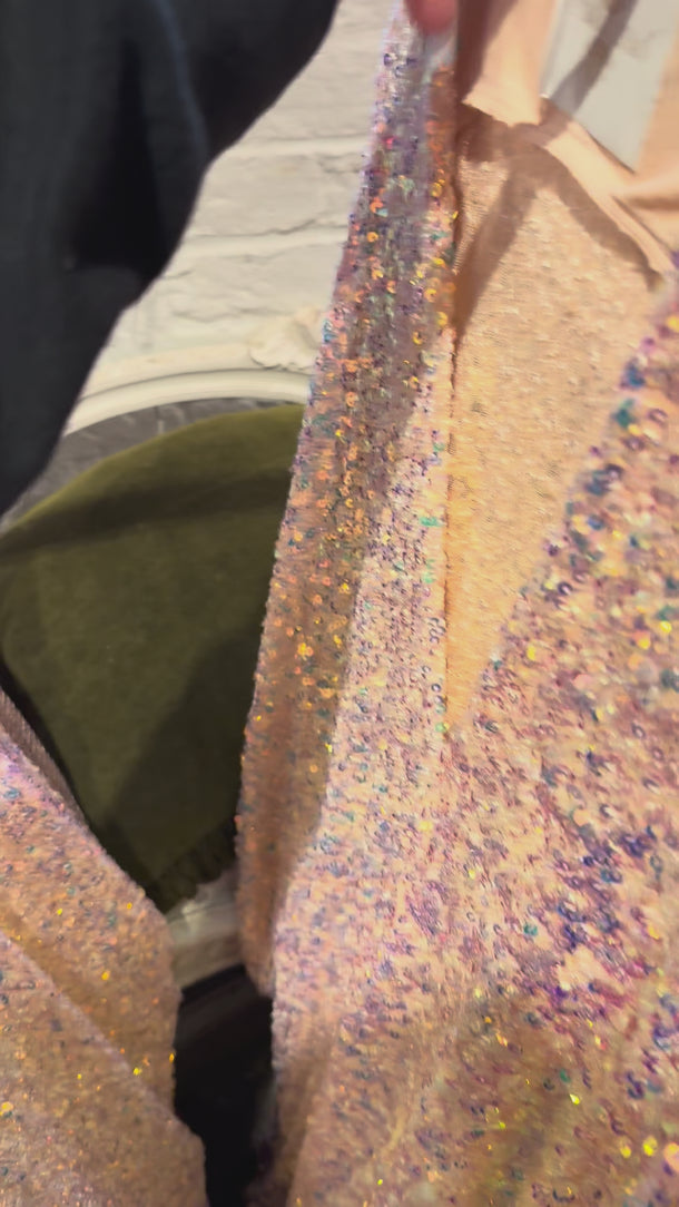 XMAS 25 OFF THE RAILS - luxe iridescent peach maxi -neck