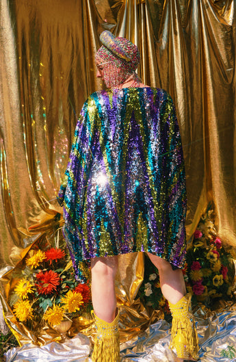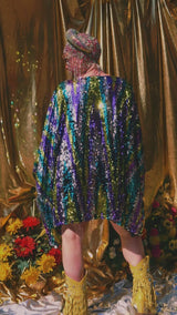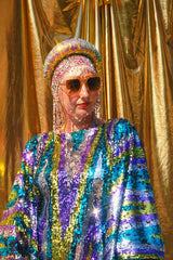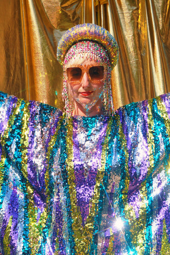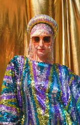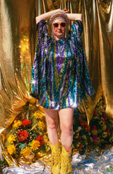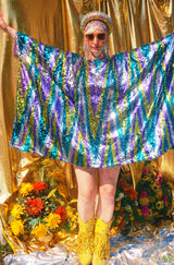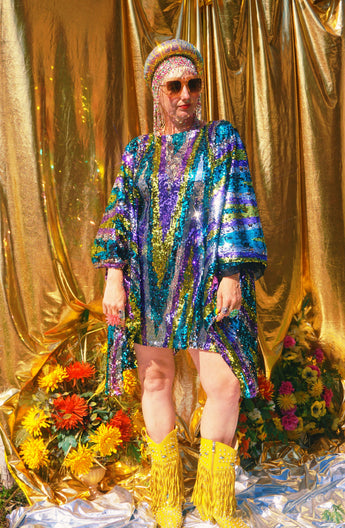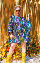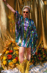 Ziggys Nebula Sequin Round Neck Mini Dress. Our famed Ziggy sequins (as seen on stage touring with the scissor sisters!) return with a new colourway! Medium weight with slight stretch