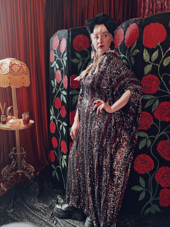 Our kaftan dresses are uniquely fitted with hidden velvet ribbons inside, meaning YOU decide how you'd like to wear them. Choose from -