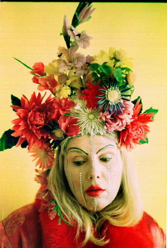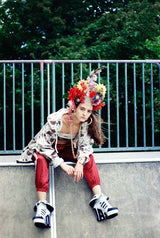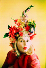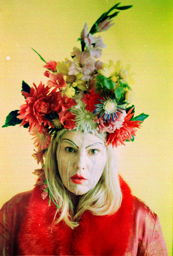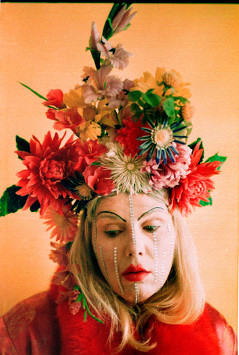 Priscilla Queen of the Desert inspired headdress made from vintage 50s and 60s RARE plastic flowers. ABSOLUTE showstopper of a piece using a mixture of plastic flowers and roses and foliage. The back of the headdress is also filled with flowers so can be worn the opposite way round if desired. Arranged on a stiffened felt base and elasticated with thin elastic which sits at the nape of the neck for stability and comfort.