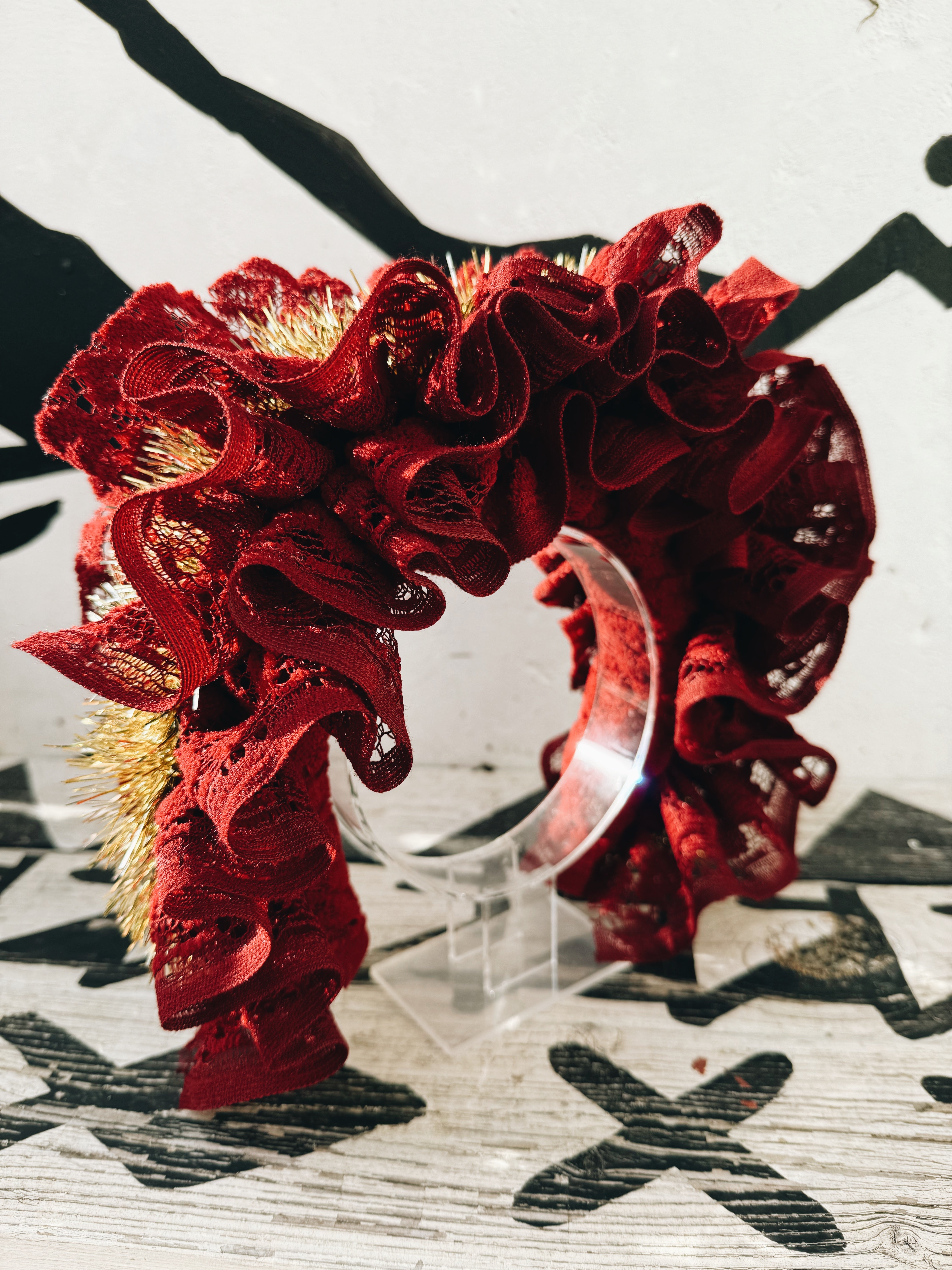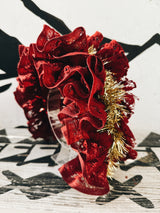 Crimson Lace Ruffle headband Extra Big ruffles with tinsel!