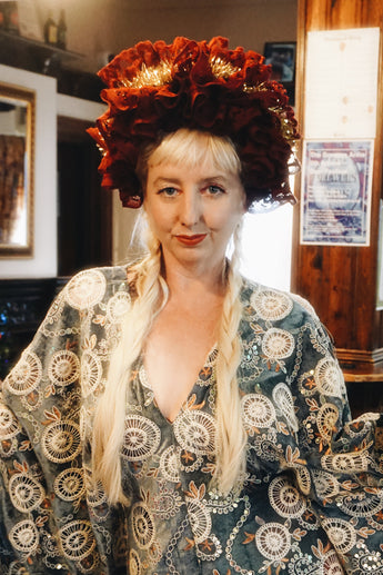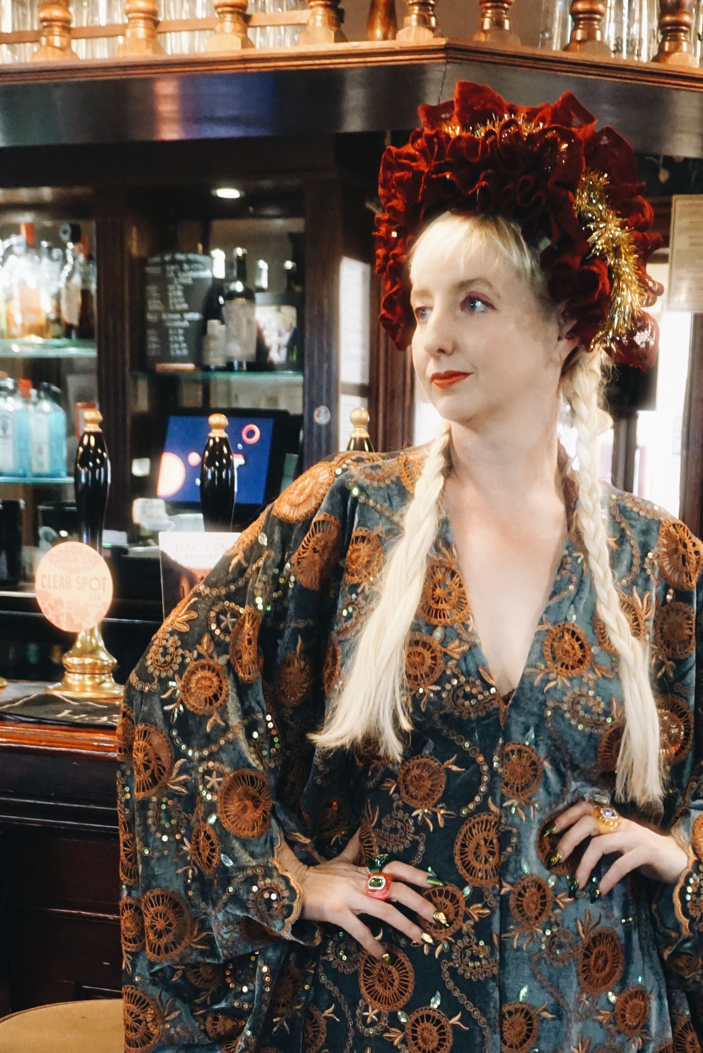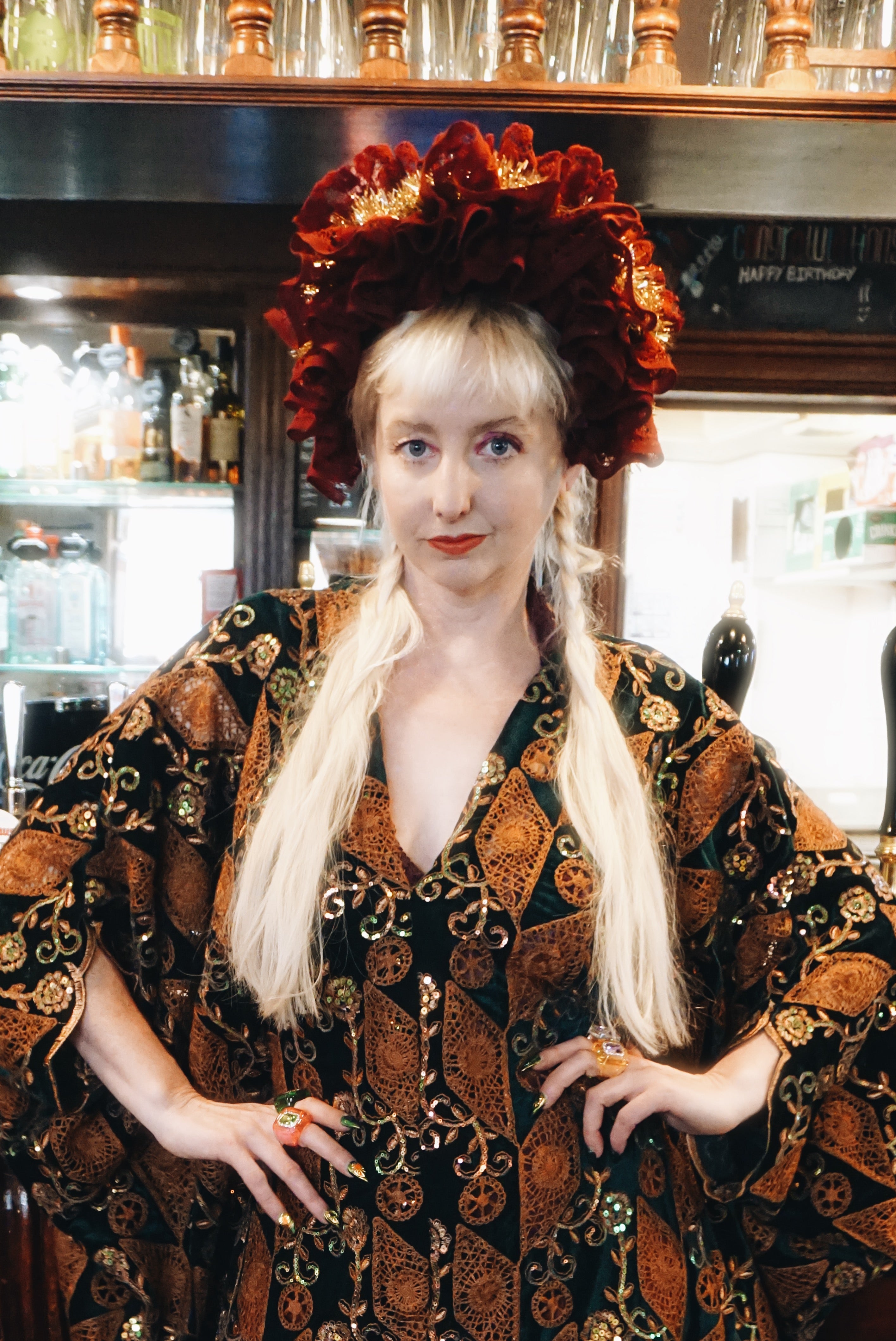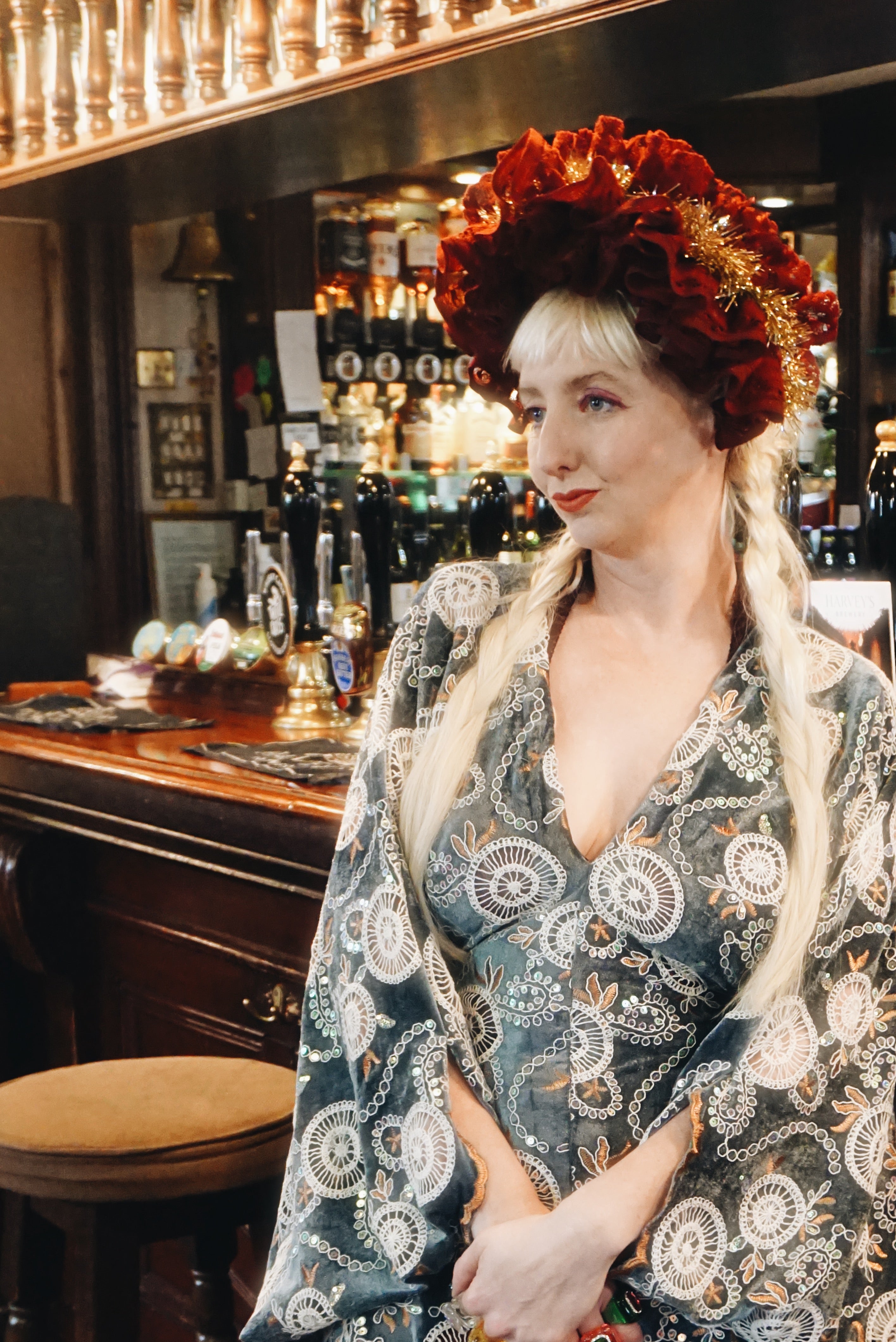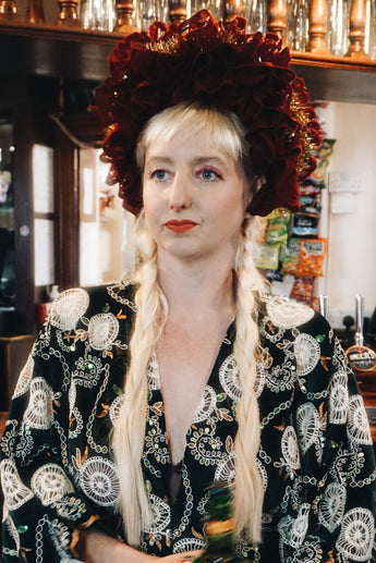 Big bold ruffle headdress - extra large to give a bonnet shape effect and finished with festive tinsel