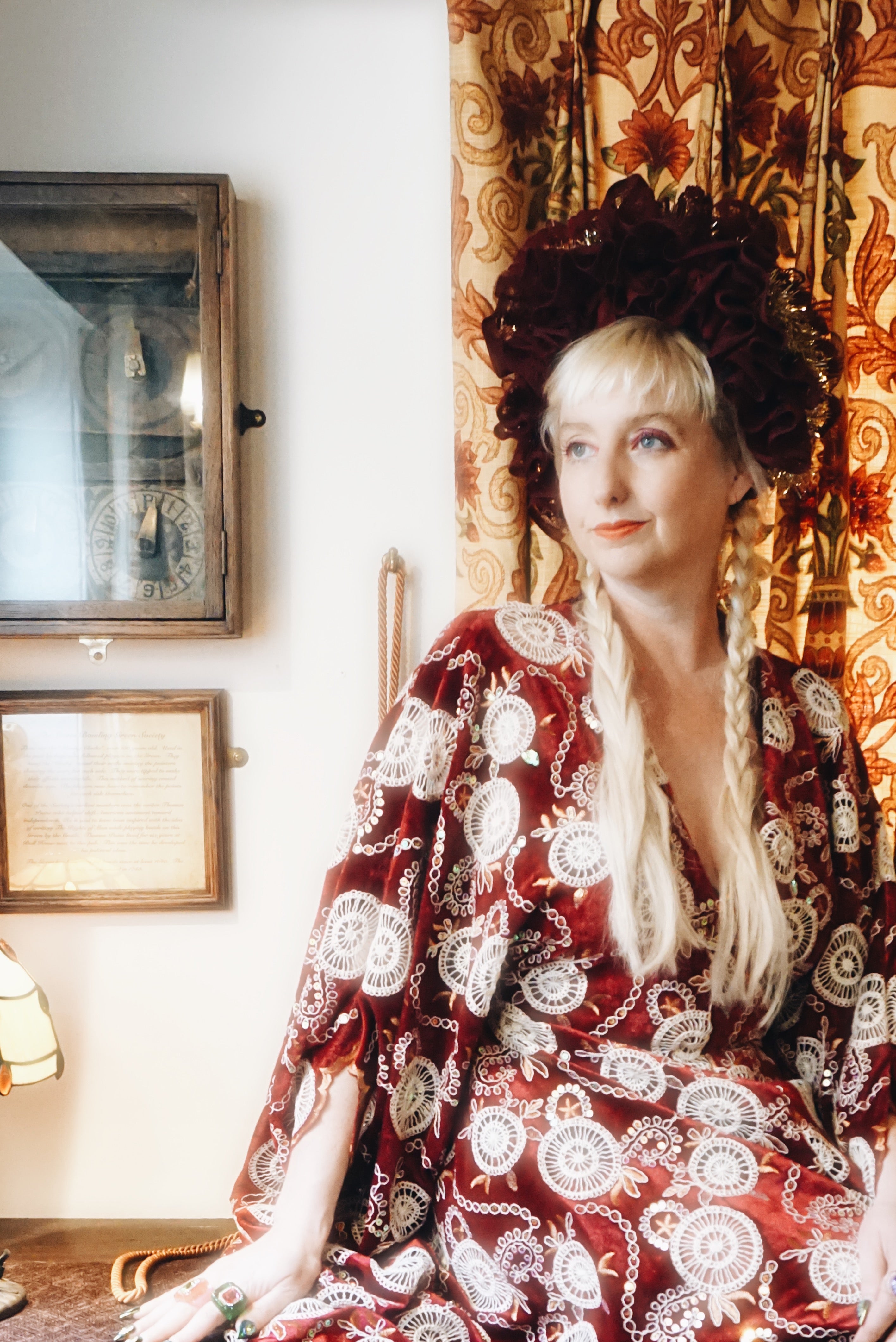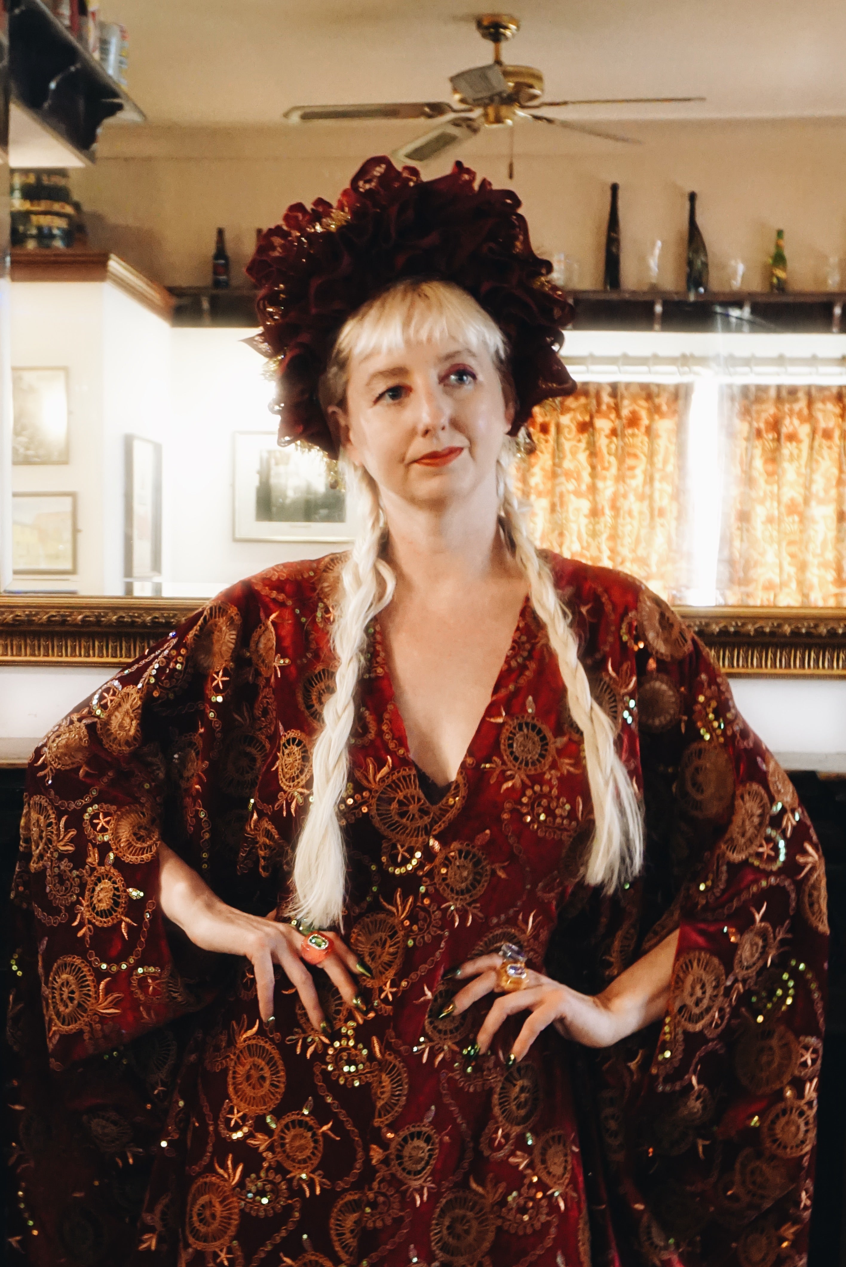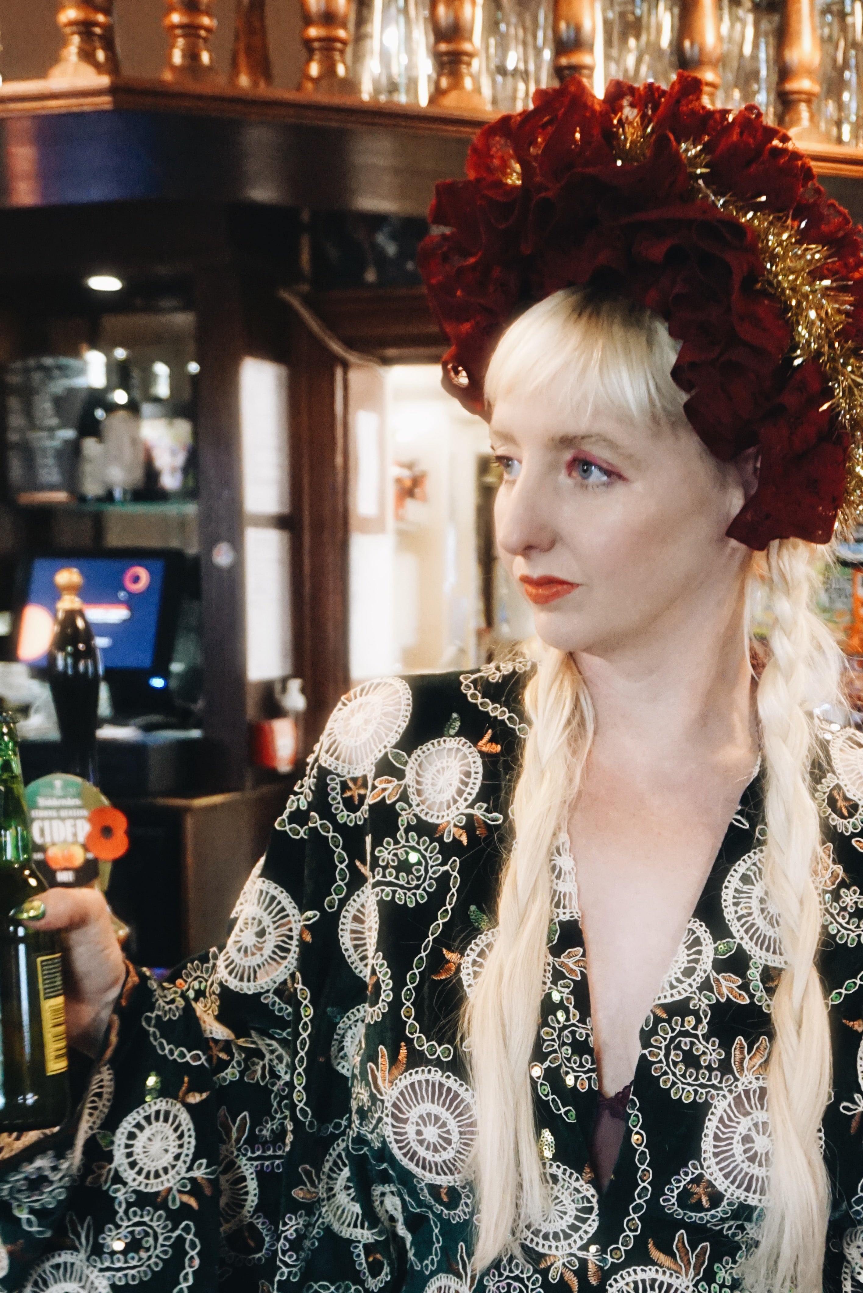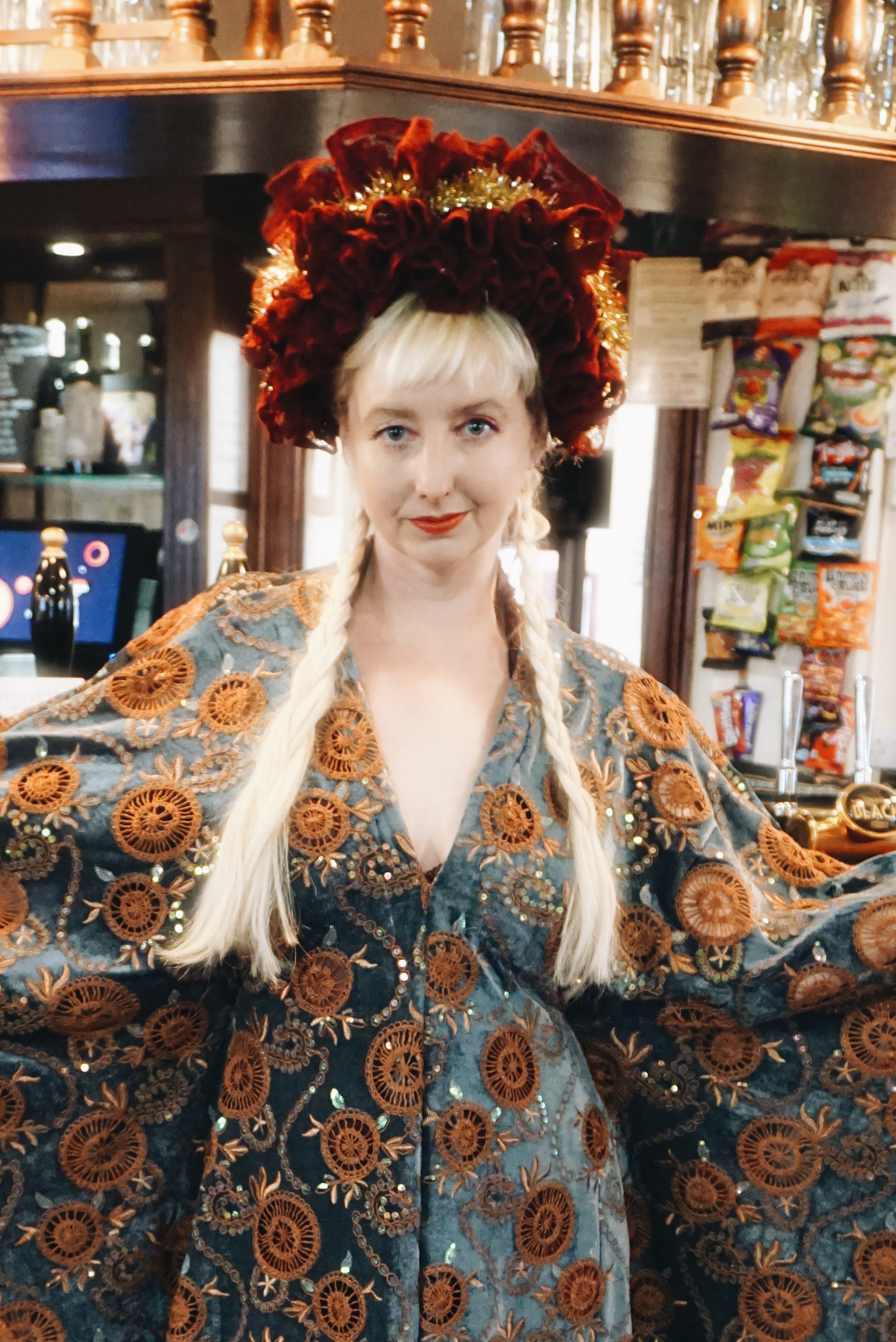 Big bold ruffle headdress - extra large to give a bonnet shape effect and finished with festive tinsel