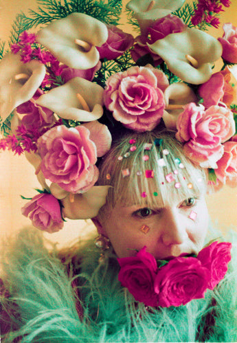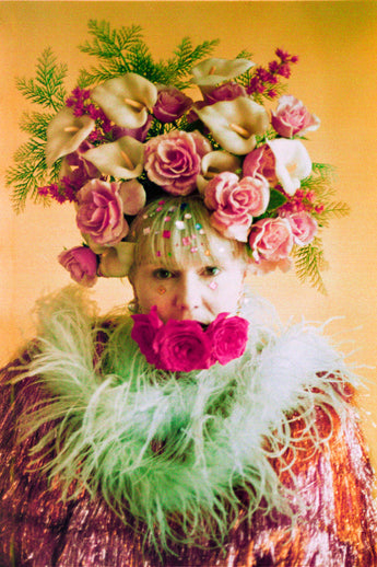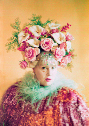 Priscilla Queen of the Desert inspired headdress made from vintage 50s and 60s RARE plastic flowers. ABSOLUTE showstopper of a piece using plastic lilies and roses and foliage.