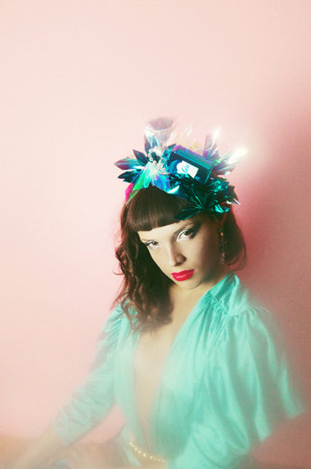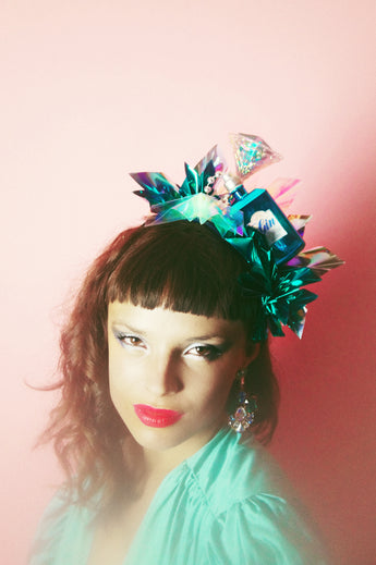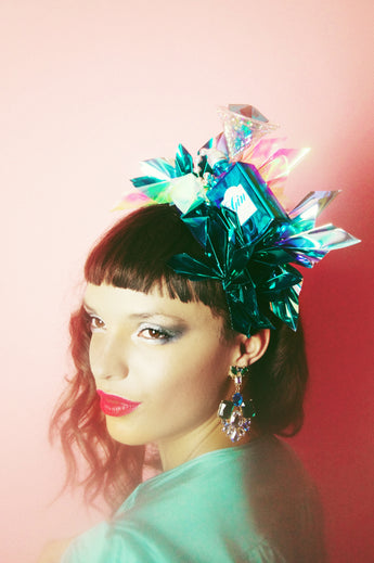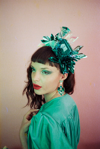 An Array of metallic origami pieces - all hand cut and folded and arranged into a structural shape which can be worn on either side or middle of the head. Available in a range of colours - Pleas message me for photo colour references. Very lightweight and comfortable, and ideal for nights out, parties, Christmas and New Years Eve or any event where you want to sparkle !