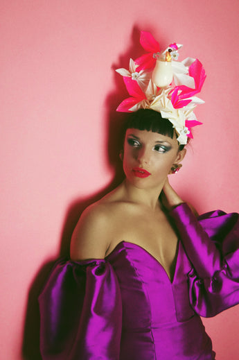 A one woman operation using an amalgamation of styles to create a range of couture headwear and accessories. Rooted in the fantastical and the flamboyant a fumbalinas garment always consists of an elegant edge and a touch of the surreal.