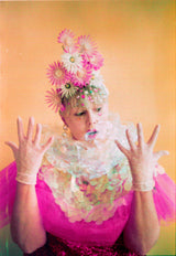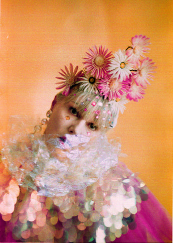 Priscilla Queen of the Desert inspired headdress made from vintage 50s and 60s RARE plastic flowers. ABSOLUTE showstopper of a piece. All flowers are wired so can be moved and rearranged to your liking. Arranged on a stiffened felt base and elasticated with thin elastic which sits at the nape of the neck for comfort and stability.