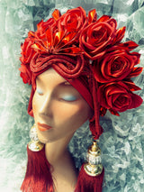 Red Roses Tassel Turban