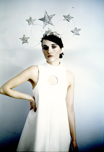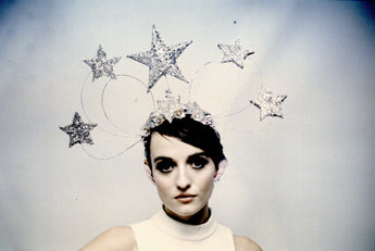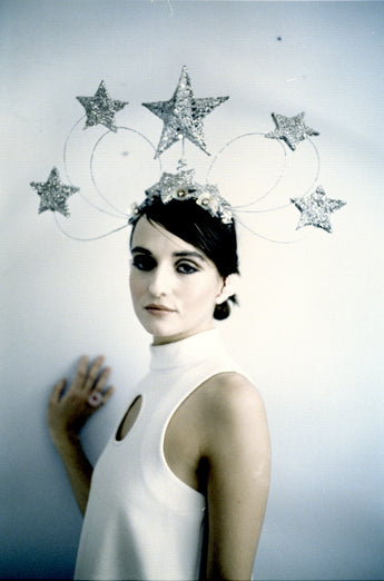 Dramatic silver stars headdress - vintage cabaret/burlesque inspired.