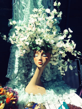 White and off white / cream sprays Statement floral Headdress. This pieces is reversible so can be worn 2 ways.