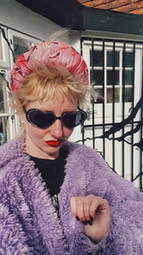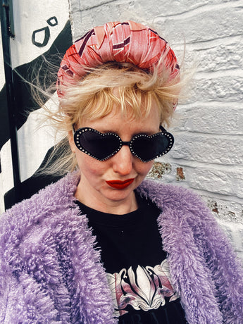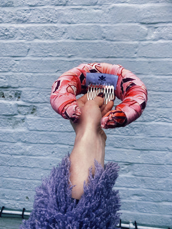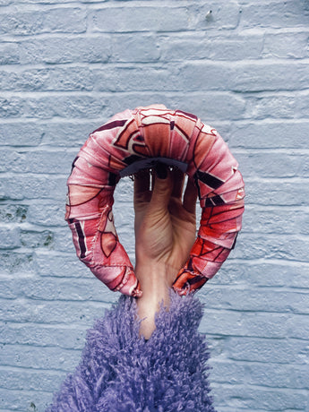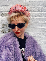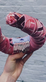 Our sold out Heartbreaker Pink Psychedelic Floral and Geometric Opulent Velvet is back in the form of a super padded headband with extra comb for stability. Hand-stitched and handmade in the UK.
