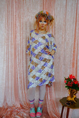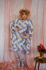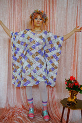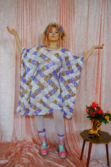 Lavender, Gold, and Pearlescent White Geometric Print Kaftan Mini
