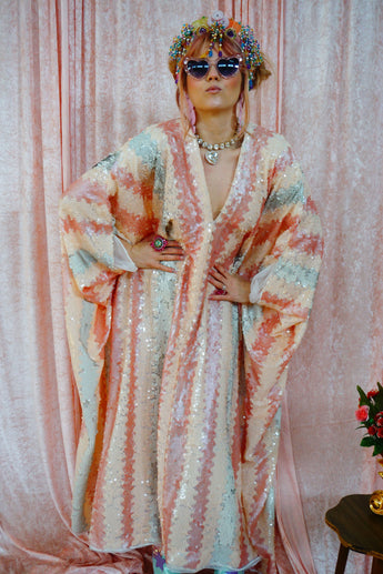 Pastel pink Zig-Zag Striped V-Neck Maxi Kaftan Gown