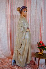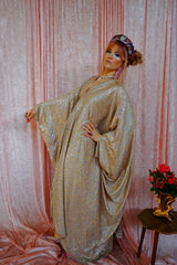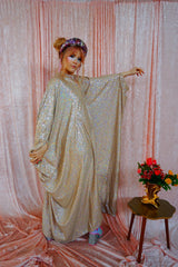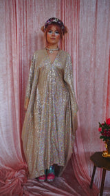 Champagne Shimmer Sequin V Neck Kaftan Gown, Freesize