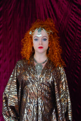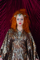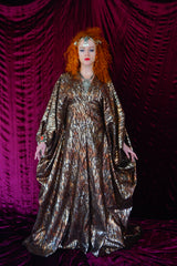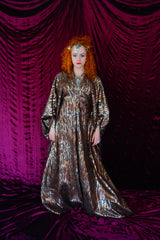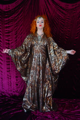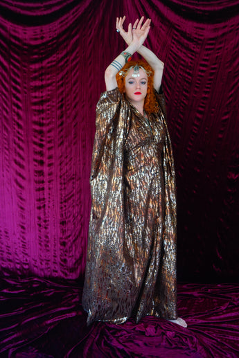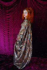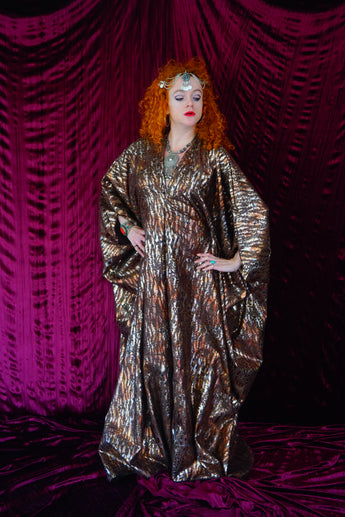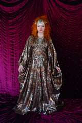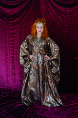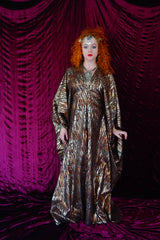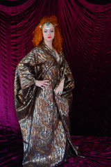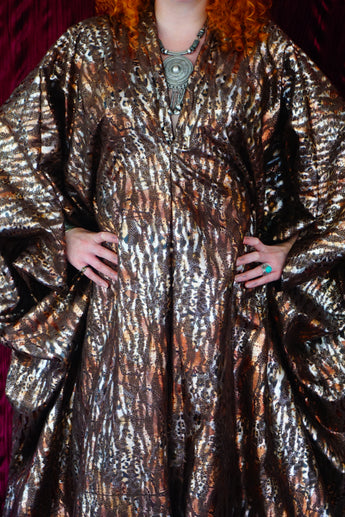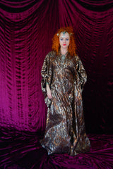 Brown and gold animal print suedette kaftan Gown