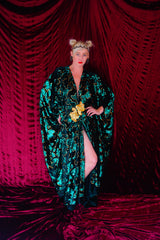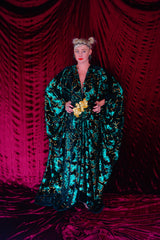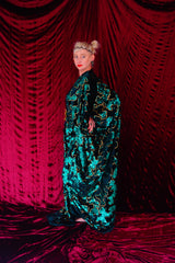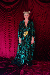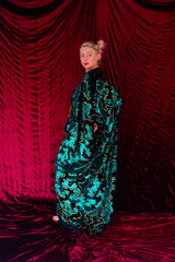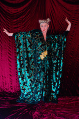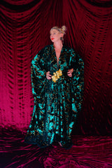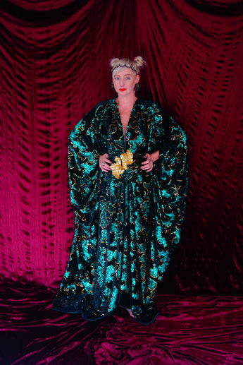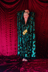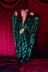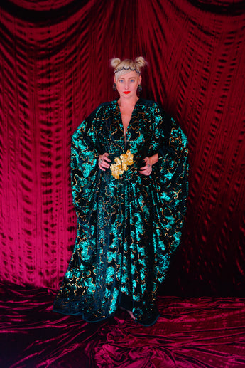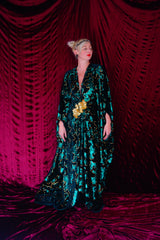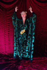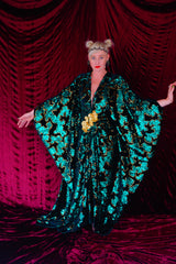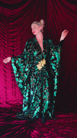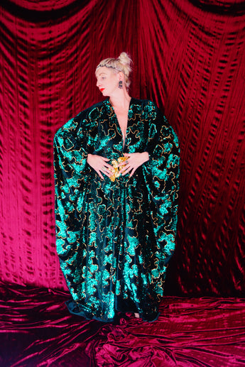 Divine Green velvet and gold sequin batwing Kaftan Gown