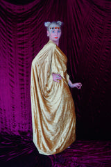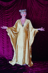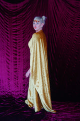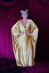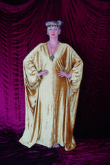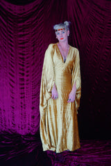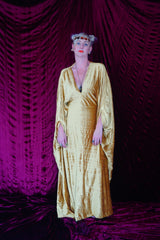 Gold Yellow Crinkle Velvet Kaftan Gown